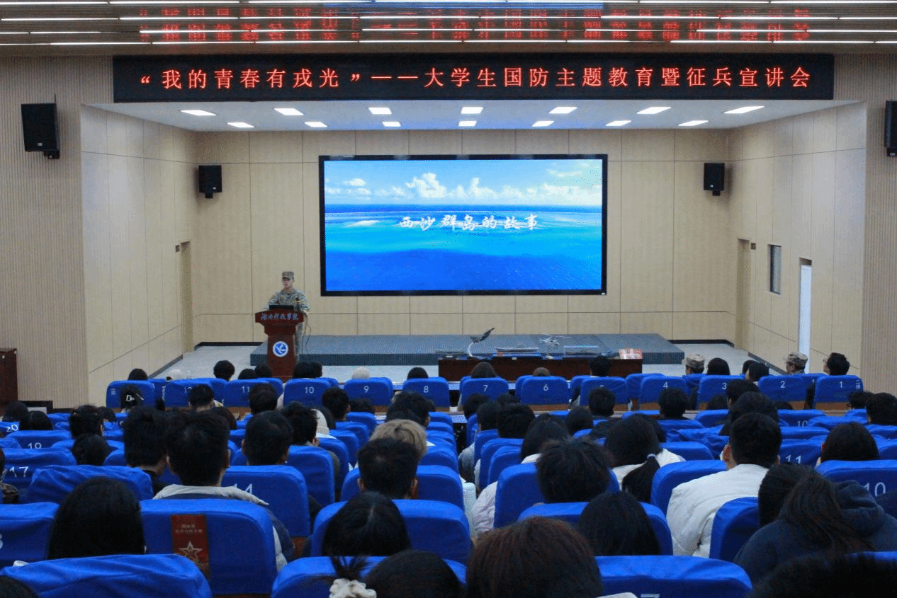 本网讯(通讯员 张健)12月4日晚,学校2025年“青春有梦,强军有我”国防主题教育暨征兵宣讲活动在明德楼100报告厅举行。原海军一级上士、曾先后服役于辽宁舰和山东舰的李翔,与两位优秀退伍大学生士兵同台分享,为现场200余名师生带来了一场直击心灵的国防教育课。