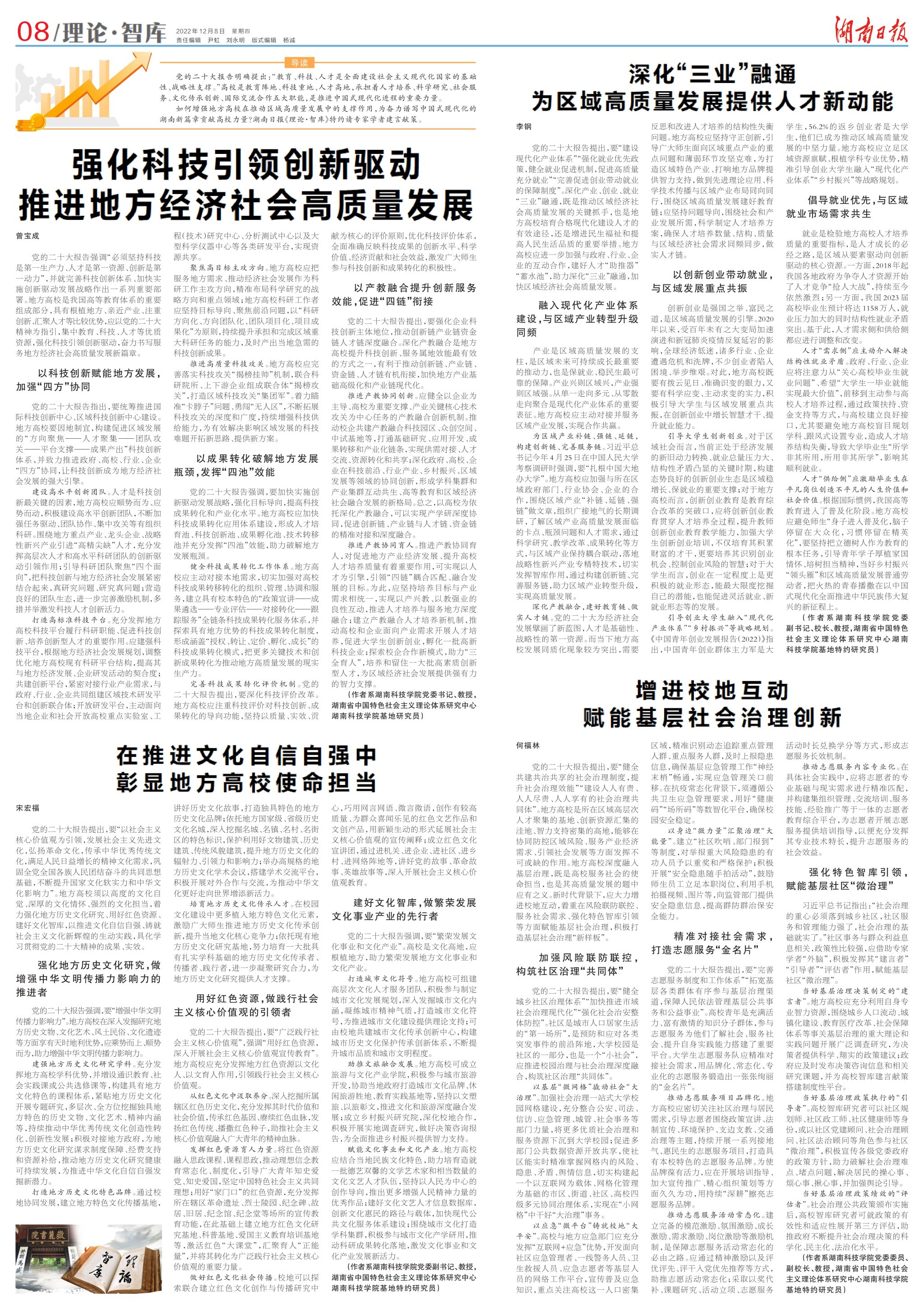 党的二十大胜利召开后,学校迅速掀起学习宣传贯彻热潮。2022年12月,《湖南日报》整版刊发伟德领导班子成员系列理论文章。