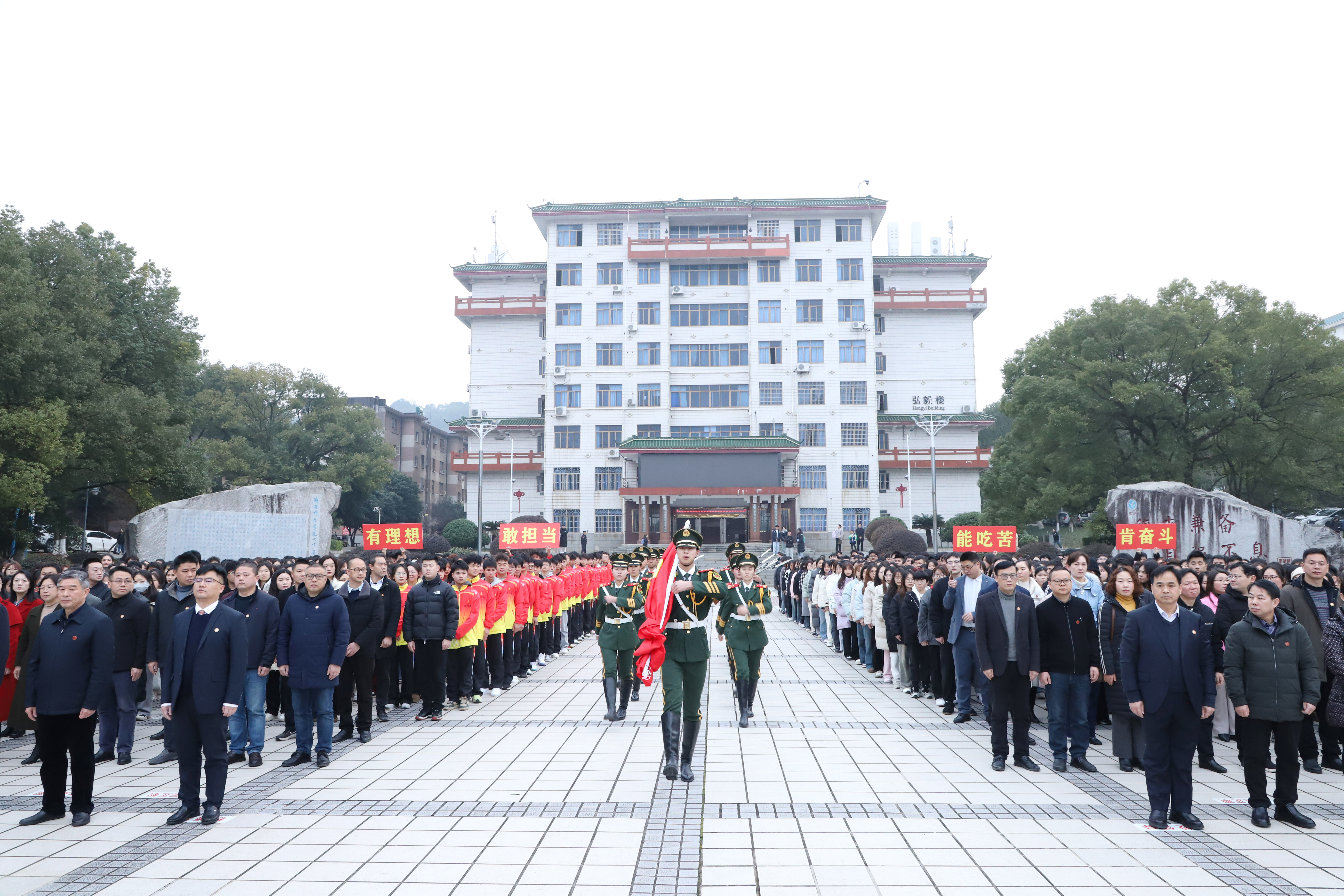全体中层正职干部、教学学院党总支副书记、辅导员、学生代表参加升旗仪式。