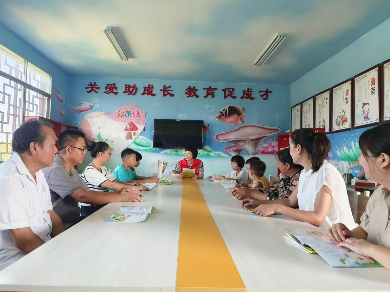 在画眉山村,姜化林和郑芳梅引导小朋友们阅读《三国演义》绘本,生动地讲述了“桃园英雄三结义”等精彩章节。