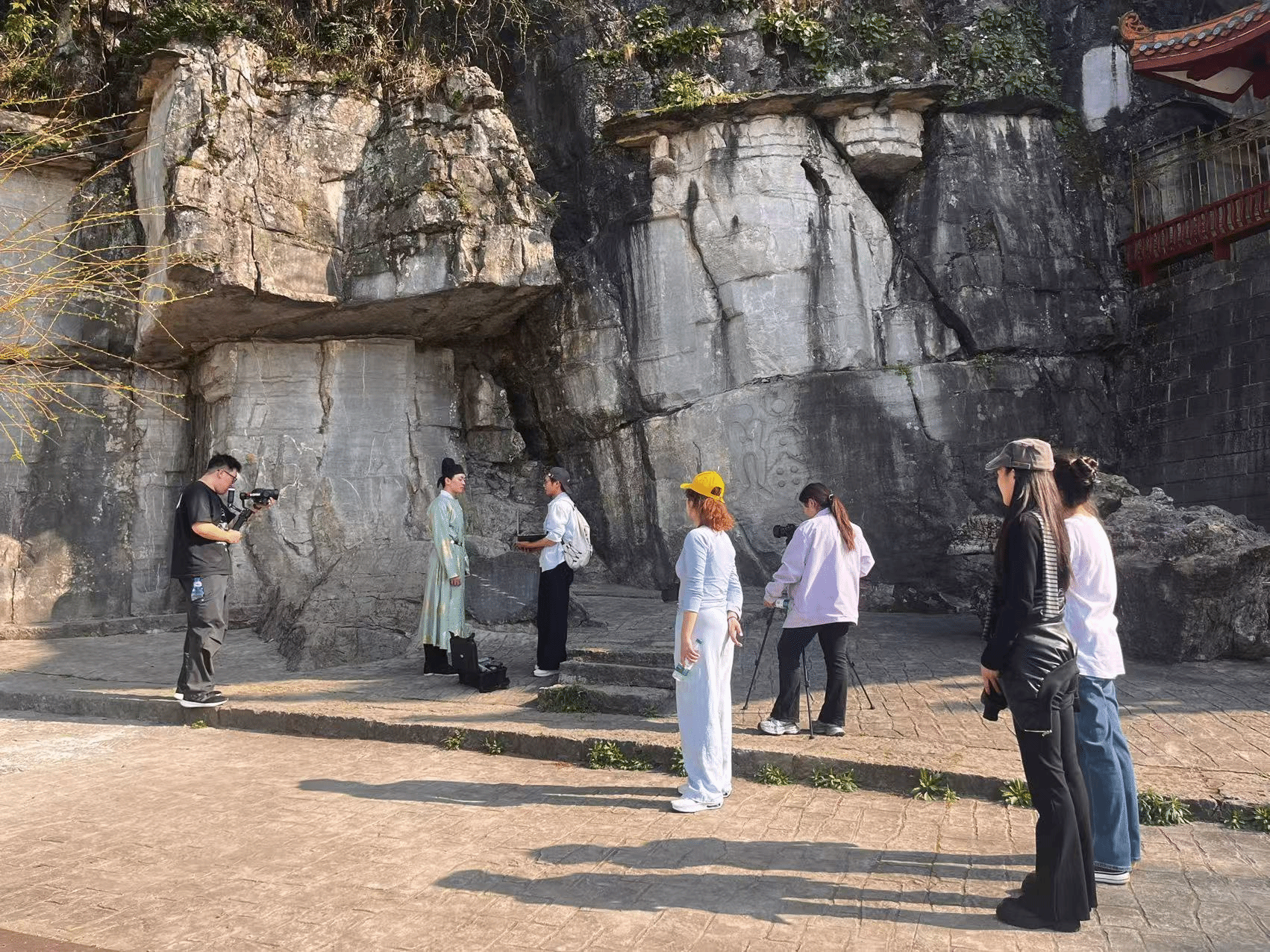 《石刻新生》聚焦祁阳市浯溪碑林的五百余方摩崖石刻,旨在通过舞蹈艺术展示现代数字修复技术如何让文化遗产“重生”。工作坊成员通过仔细观察石刻的纹理、字体和历史痕迹,与当地的文化专家和数字修复技术人员深入交流,了解石刻的历史背景、文化价值以及数字修复技术的原理,为视频创作积累了丰富的素材和灵感。