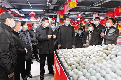 前来置办年货的群众热情向总书记问好。习近平亲切询问大家年货备齐没有。习近平强调,各级党委、政府和领导干部要把事关百姓切身利益的事情抓实抓好,尤其要落实防疫措施,加强食品安全监管,确保百姓过年安心、放心、舒心。