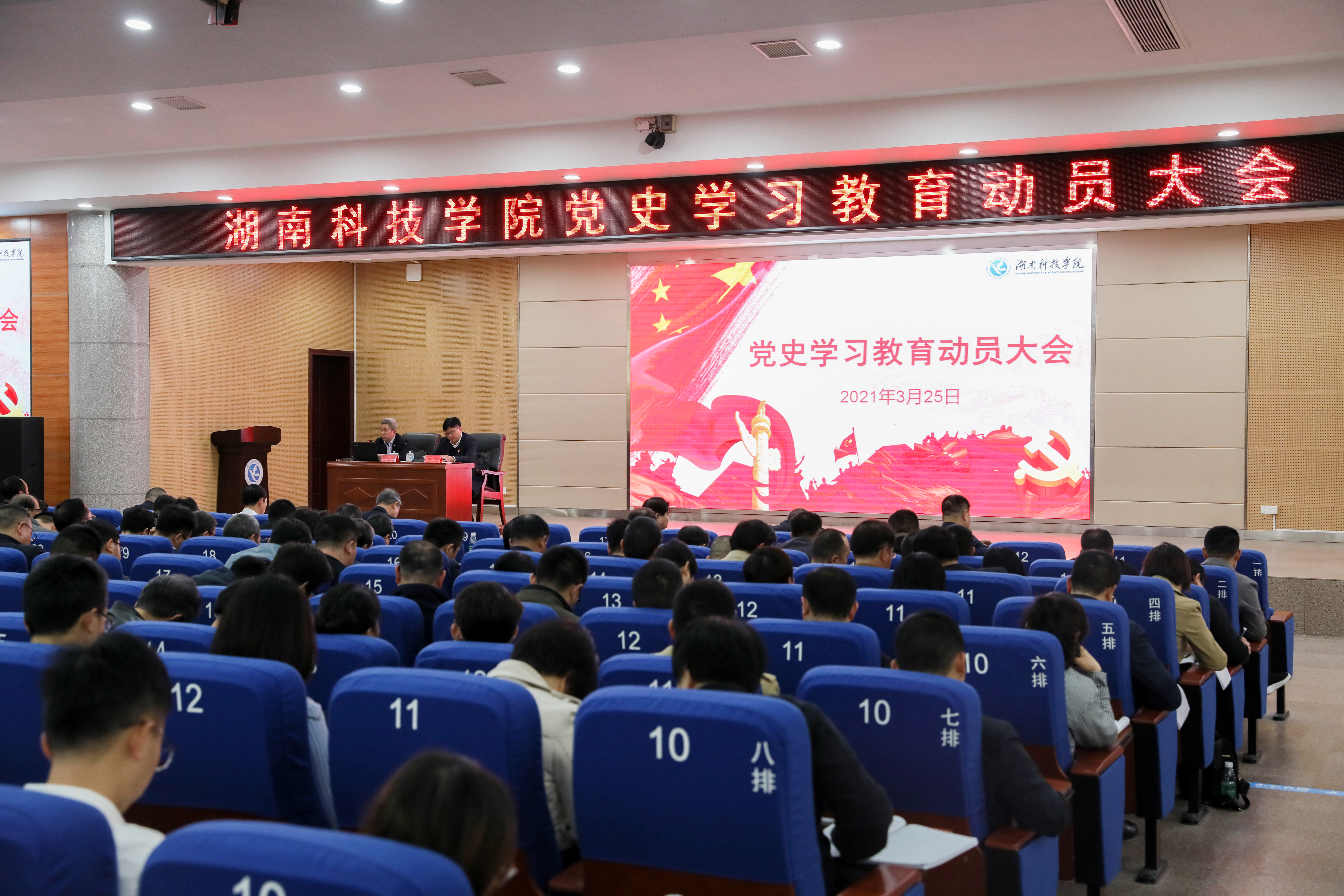 本网讯 3月25日下午,学校召开党史学习教育动员大会暨第一次专题学习。党委书记、校党史学习教育领导小组组长曾宝成作动员讲话。党委副书记、校长李钢主持。党委领导班子成员、全体中层干部、各基层党支部书记、党员代表参加大会。