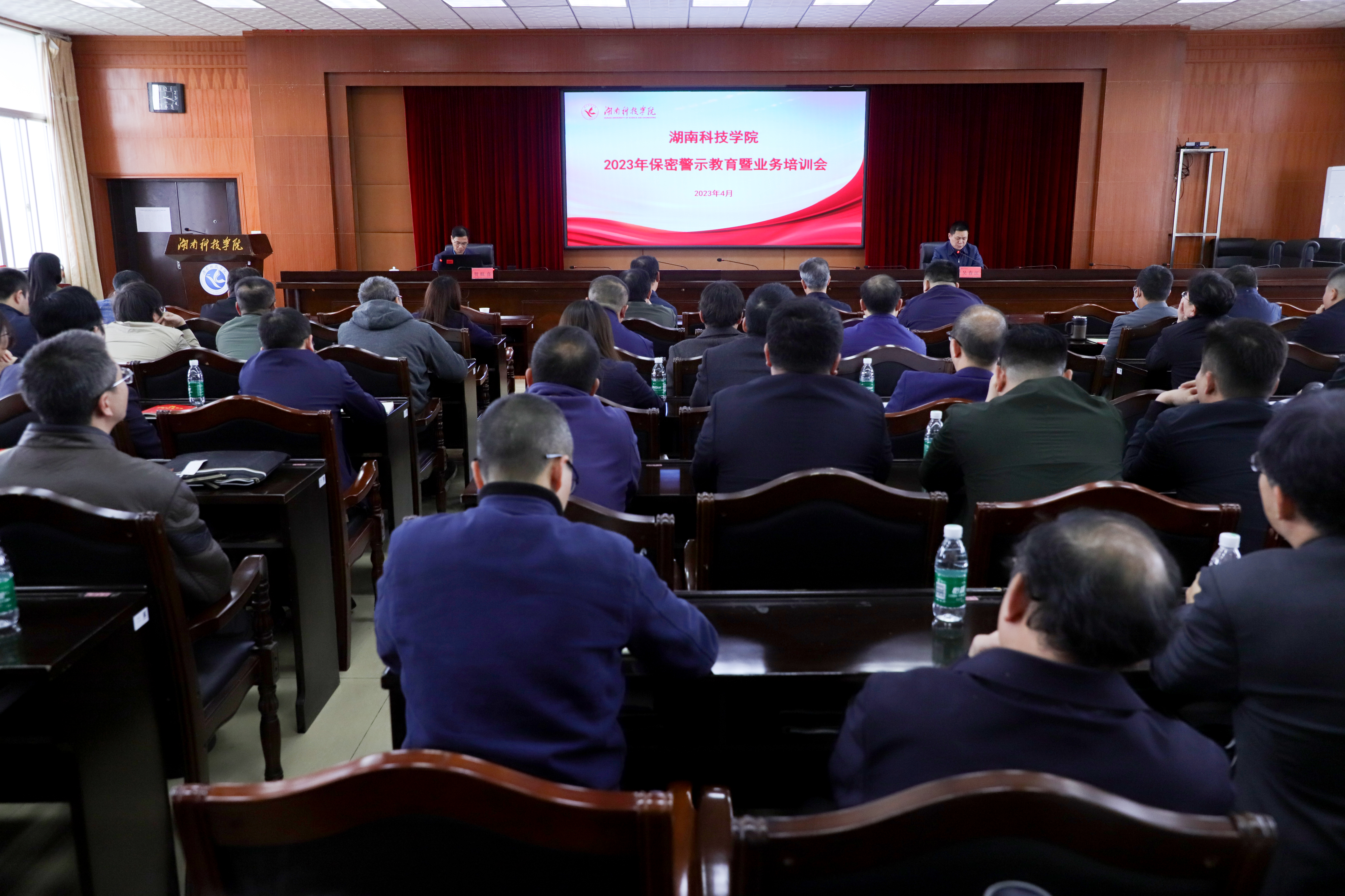 本网讯 4月24日下午,学校举行2023年保密警示教育暨业务培训会。会议特邀永州市国家保密局副局长贺旺喜来校作国家安全保密意识专题讲座。党委副书记宋宏福,党委委员、组织部部长杨涛,全体中层领导干部及相关涉密工作人员参加学习。党政办主任吴春江主持培训会。