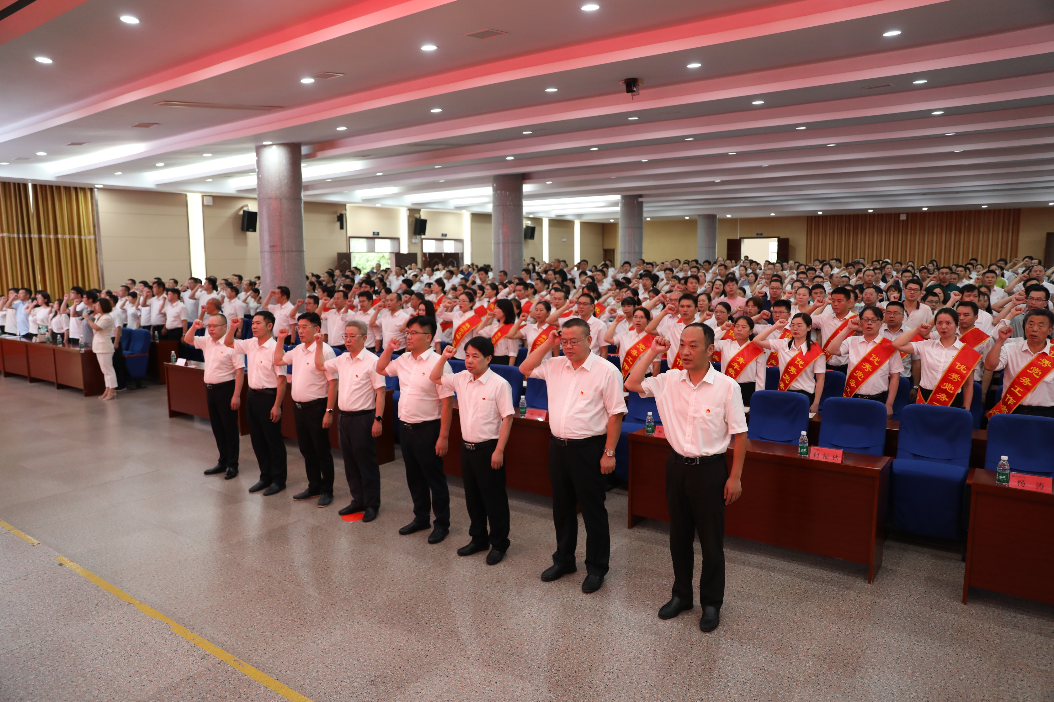 大会在庄严的国歌声中开幕。全体党委委员带领全体参会人员重温入党誓词。