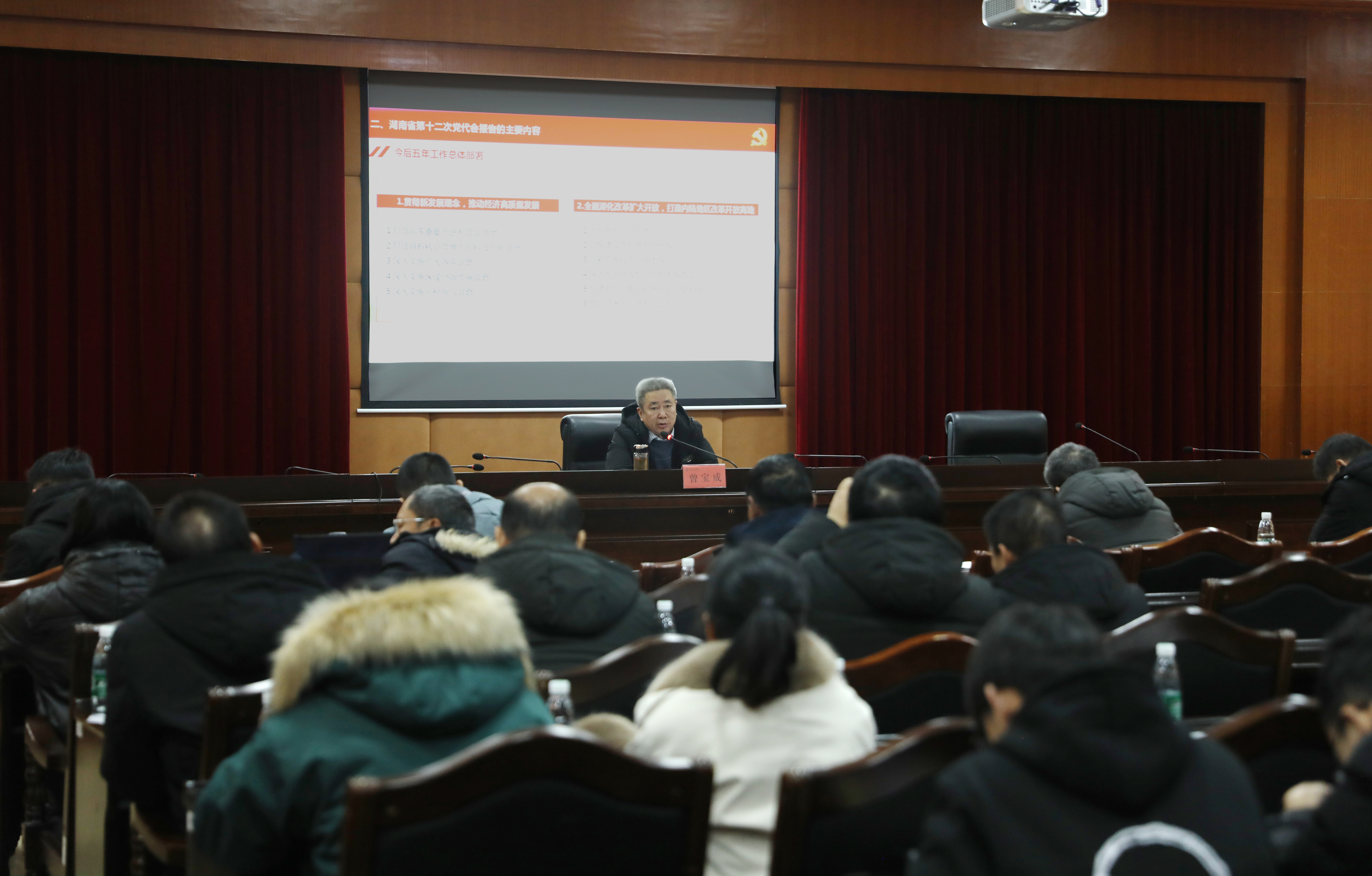 校领导、党委委员围绕党的十九届六中全会、省第十二次党代会报告的主要内容,结合详实的历史资料,深刻剖析了党的百年奋斗的重大成就和党的百年历史经验,为师生们全面深刻理解习近平新时代中国特色社会主义思想的丰富内涵和核心要义及习近平新时代中国特色社会主义思想产生的理论逻辑、历史逻辑和实践逻辑,作了深入浅出的讲解。