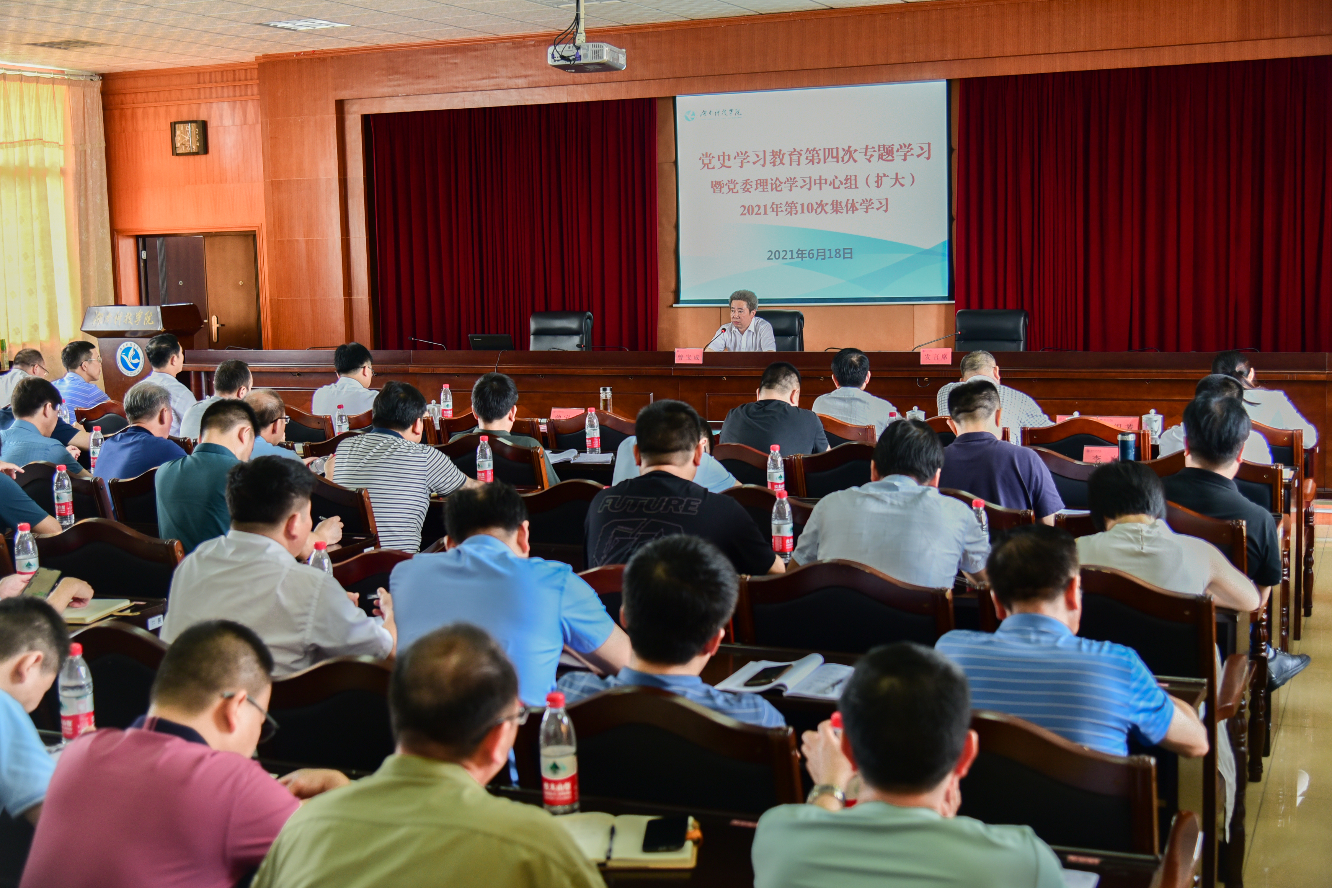 曾宝成强调,庆祝中国共产党成立100周年大会即将隆重举行。要把党史学习教育与深入学习贯彻落实习近平总书记在大会上的重要讲话精神结合起来,同当前正在做的事情结合起来,抓好“七一”前后党史学习教育的有效衔接,将学习成果转化为办实事、开新局的强大动力和智慧经验,推动“十四五”规划各项目标任务不折不扣落到实处,为建设特色鲜明的地方性高水平应用型大学而努力奋斗,为服务湖南省实施“三高四新”战略和地方经济社会发展做出新贡献,以实际行动和优异成绩庆祝建党100周年。