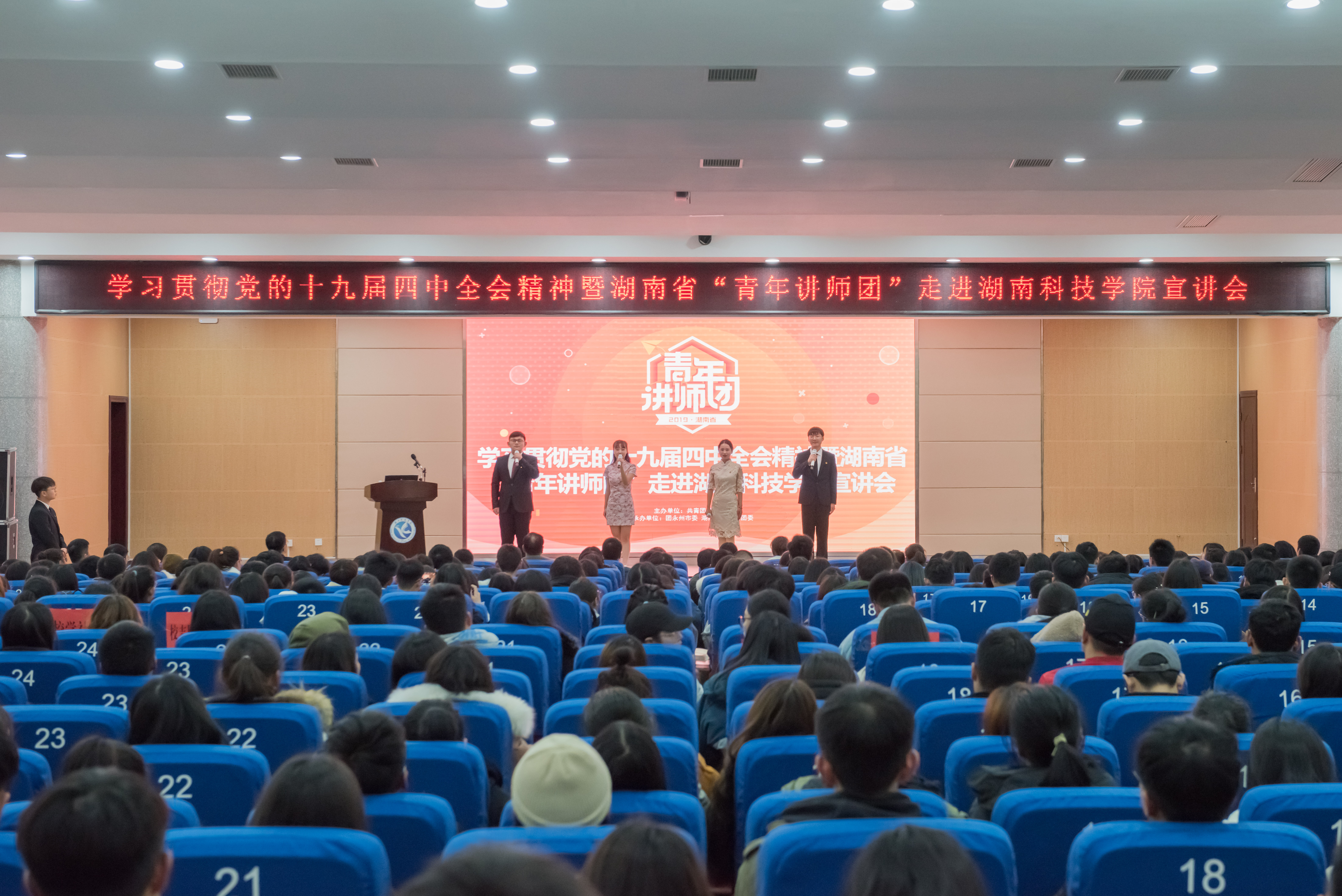 本网讯 12月19日晚,湖南省“青年讲师团”走进伟德宣讲十九届四中全会精神。青年讲师们围绕学习贯彻党的十九届四中全会精神,结合自身工作实际,以自己的亲身经历和真情实感,生动讲述祖国发展成就故事和青年追梦奋斗故事,学校800余名师生代表现场聆听。