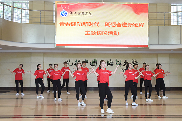 快闪活动结合《龙的传人》《红日》《追光者》《我多喜欢你,你会知道》《带你去旅行》等青年学子熟知喜爱的歌曲,将习近平新时代中国特色社会主义思想、党的十九大精神内涵融入曲目中,进行填词和编舞,以大家喜闻乐见的歌舞快闪形式在学校美术楼、尚美楼、桃园学生食堂、行政办公楼以及东门等地进行演绎,节奏明快的音乐旋律和充满活力的舞姿吸引了众多师生驻足观看。活动最后,全体师生高声合唱《我爱你,中国》,令全场热血沸腾,心潮澎拜,爱国情愫油然而生。