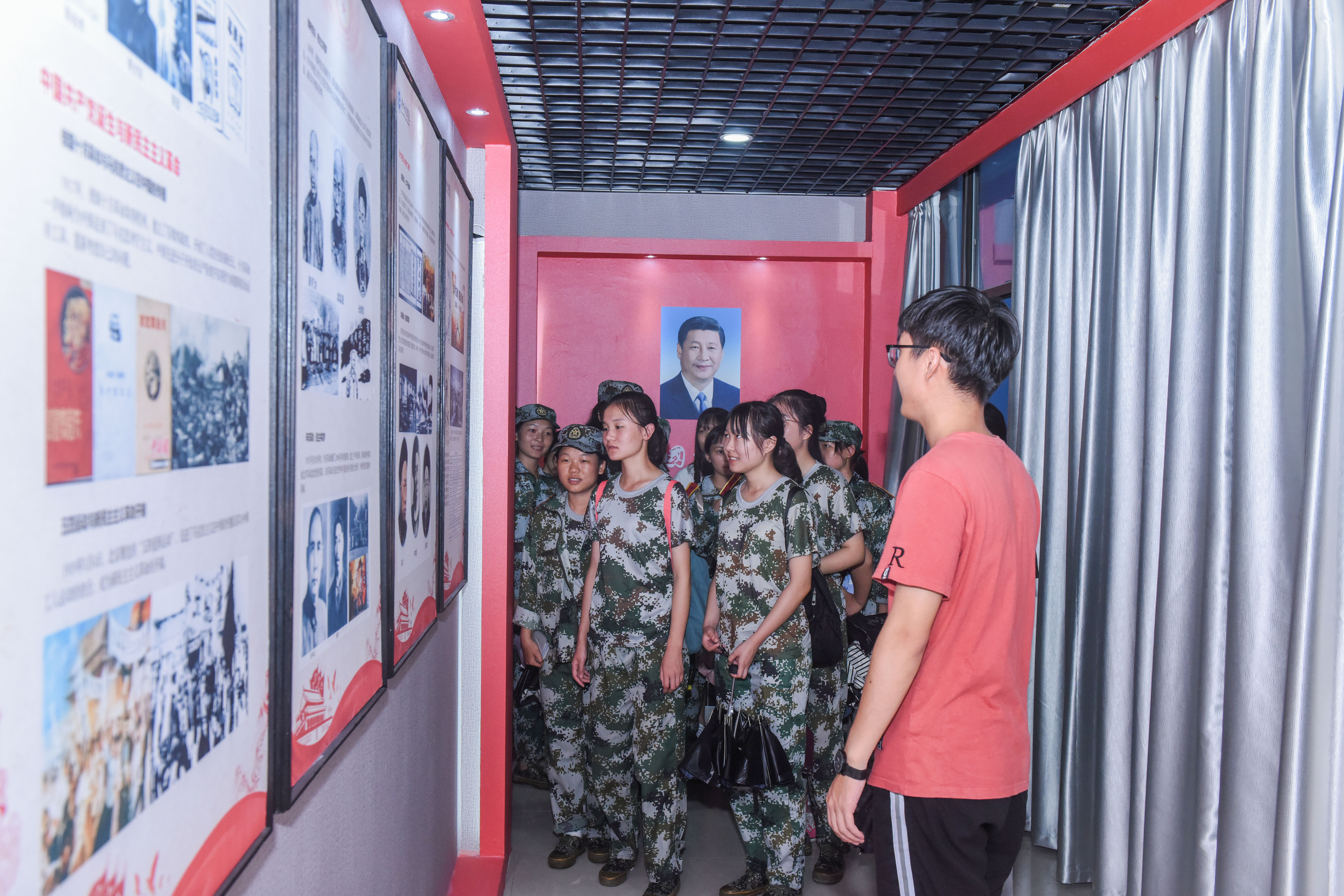 该教育馆坐落在松园食堂四楼,展览内容以党的十九大报告为主线,分十三个部分,穿插照片及图画2000余幅,通过图文并茂的方式,为更全面更直观地传播习近平新时代中国特色社会主义思想和十九大精神提供了新平台,为强化师生理想信念教育提供了新方式。