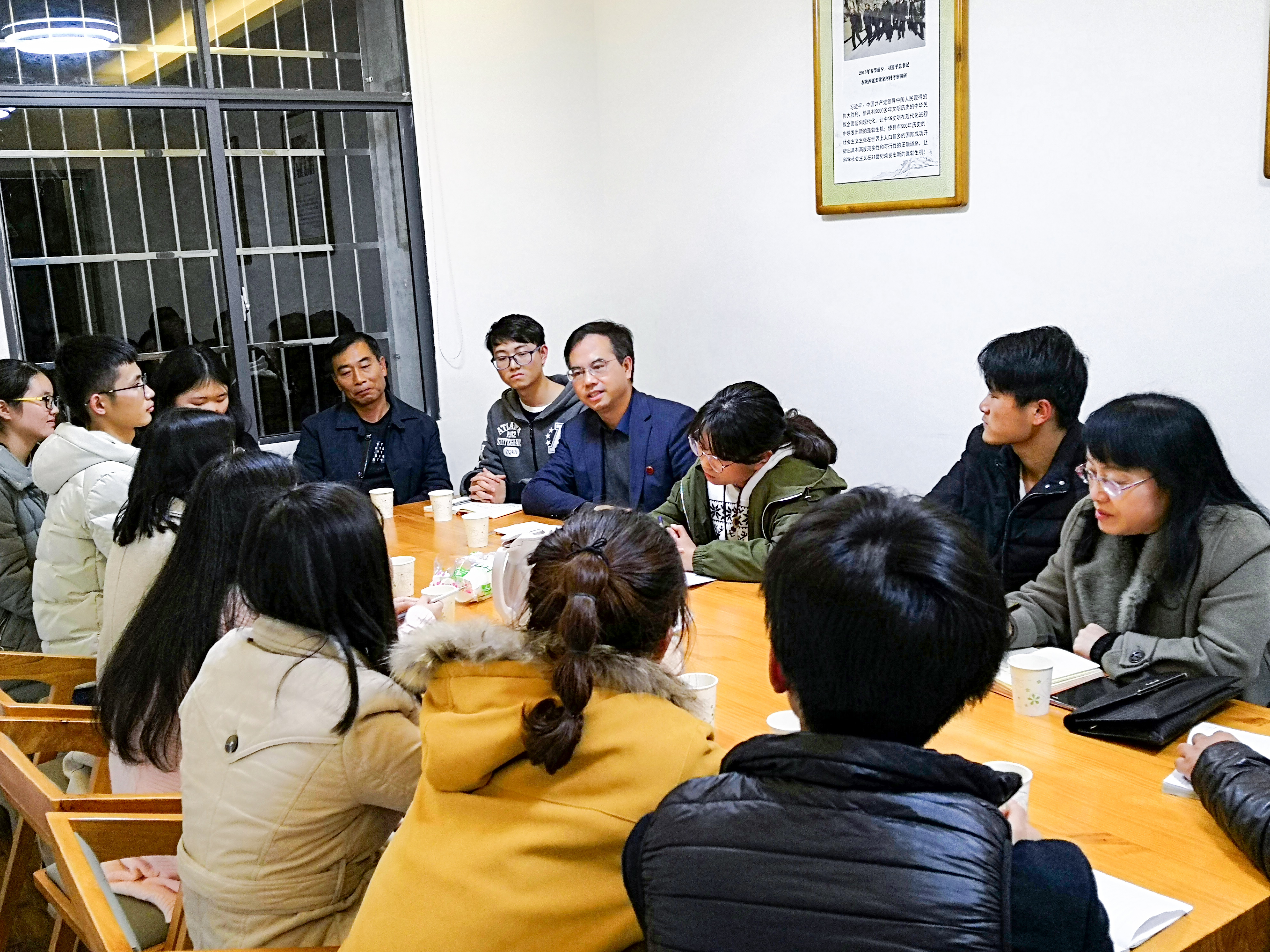 本网讯 12月4日晚,由习近平新时代中国特色社会主义思想研究与实践协会组织的“学平语,悟思想”交流会在子和书屋举行。校党委书记陈弘、马克思主义学院院长廖雅琴、唐森树教授等作为协会指导老师参与了本次活动。
