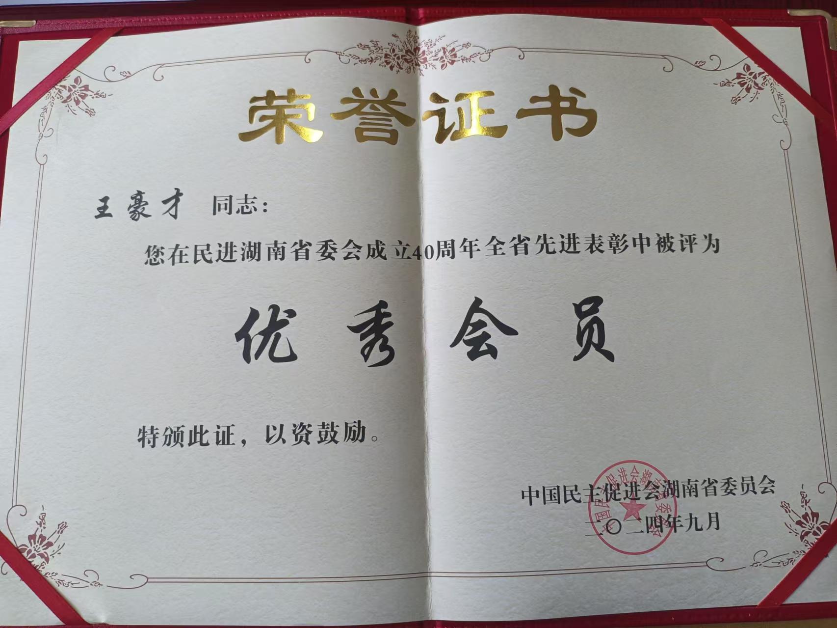 本网讯(通讯员 李焕品)9月4日,在长沙召开的民进湖南省委会成立40周年庆祝大会上,伟德教师、民进会员王豪才荣获表彰,被评为“优秀会员”。全国人大常委会副委员长、民进中央主席蔡达峰出席庆祝大会,并向获奖者代表颁奖。