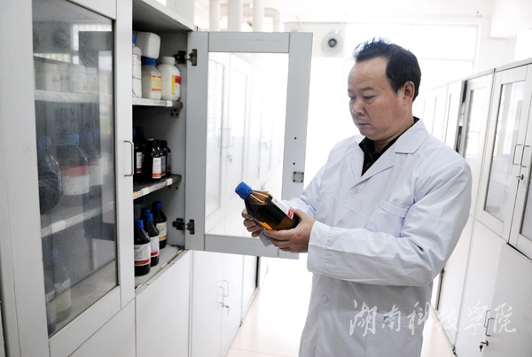 为了更好地推进工作,唐老师自任现职以来,不断抓住机会为自己“充电”,他系统地学习了化学、生物工程、食品质量与安全等专业教材,了解并掌握各课程实验的常用器械及各种常用器械的装配与使用操作要领,存放及用后处理方法、化学试剂的养护知识,从而降低损耗,严防事故。唐老师将学习的理论知识与实践操作相结合,近年来,他主持参与省级、市级、校级课题各一项,发表与实验室管理有关的论文12篇,此外,他还参与了伟德生化系教材《现代仪器分析与食品质量安全检测》的编撰。2008年,他的论文“高校实验室环境污染分析与污染防治研究”获得全国教研成果一等奖;2009年,他发表的论文“混凝剂三氯化铁稀溶液的水解及防治”获得永州市第七届自然科学优秀学术论文竞赛三等奖。“作为实验室专职管理人员,他并没有仅仅拘束于工作,而是敞开眼界追求学术,并且已经获得了较好的成就,这一点他非常了不起。”他的同事刘芳老师说道。