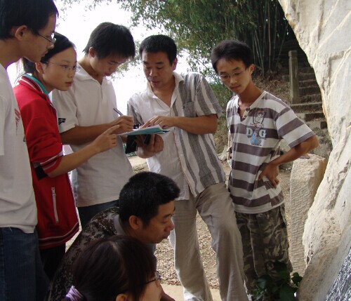 永州摩崖石刻极丰富,仅校门口的朝阳岩就有一群唐宋以来的石刻。2009年9月,张京华讲“古代汉语专题”选修课,49人选修,他组织学生分成6个组,拓片、查找文献、注解诗文、照相配图等等,几乎所有课程都在现场上,最后大家把所有的石刻都拓下来,总共150多幅,大大超出了之前所记载的114幅,特别是新发现了2首唐诗,填补空白。课程结束,中文系学生汤军的《零陵朝阳岩小史》和侯永慧的《零陵朝阳岩诗辑注》等论著也先后出版。“不过这些已是旧话,今年我和考上西南民族大学研究生的汤军合作刚刚完成了《朝阳岩石刻考释》,有40万字,这才是六年来的最新成果”,张京华说。