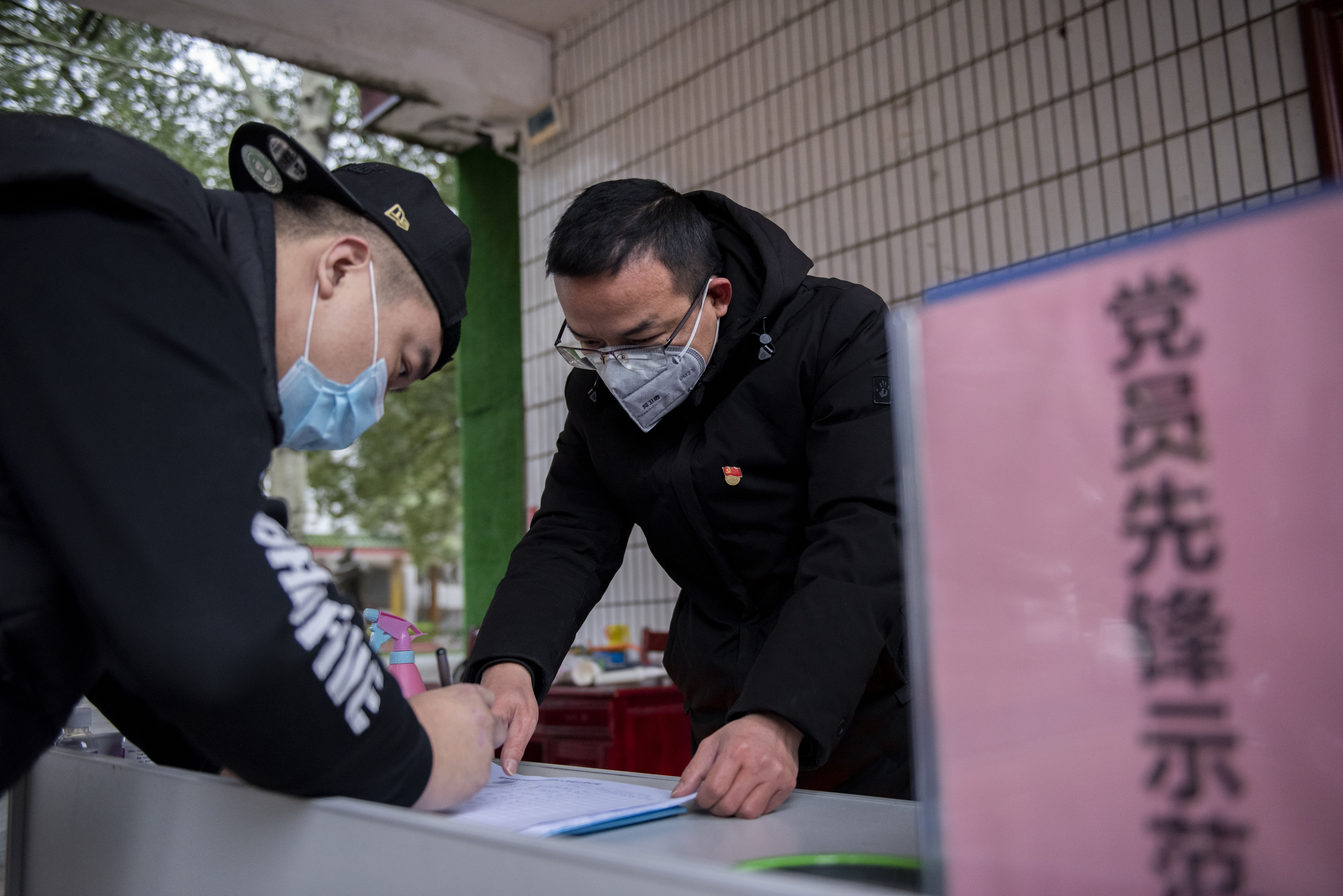 “如何更好的在战疫工作中发挥自己的力量?”这是他始终在思考的问题。他主动请缨,参与疫情防控轮班值守,除了日常的党政工作以外,还会在东大门值守,对进出人员认真做好登记,对校外无关人员耐心做好劝返。“我妻子是一名医护人员,奋战在抗疫前线,只能把刚满6岁的孩子单独留在家,虽然担心,但在严峻的防疫形势面前,我们必须这样做,共产党人一定要履职尽责,身先士卒。”谈起遇到的困难,他稍显无奈而又坚毅地说。