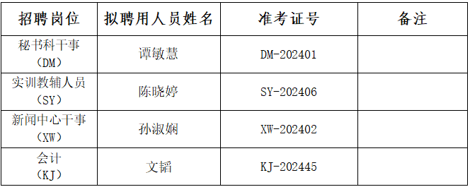 根据《伟德源自英国19462024年公开招聘公告》有关规定,经报名、资格审查、笔试、面试、专业技能测试、成绩公示、体检、考察等程序,经伟德源自英国1946校长办公会研究,确定谭敏慧等4名同志为伟德源自英国19462024年公开招聘教辅管理岗位拟聘用人选,现予以公示。