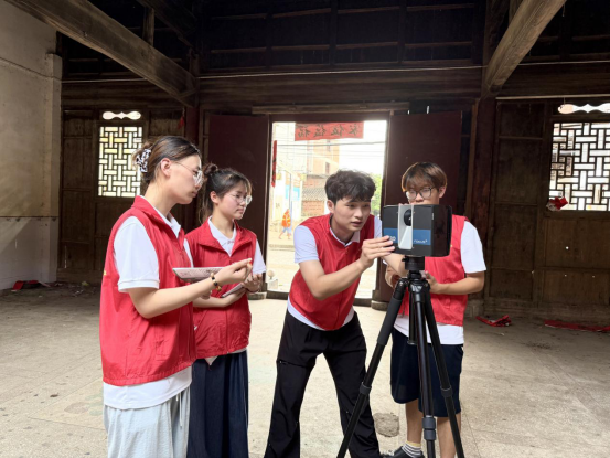 本次实践活动中,在村党支部委员会、村民委员会及驻村工作队的协同支持下,实践团队采用三维激光扫描技术,对伍氏祠堂及多栋传统民居开展三维激光扫描与数字化存档工作,有效推动了该区域古建筑数字化保护进程。