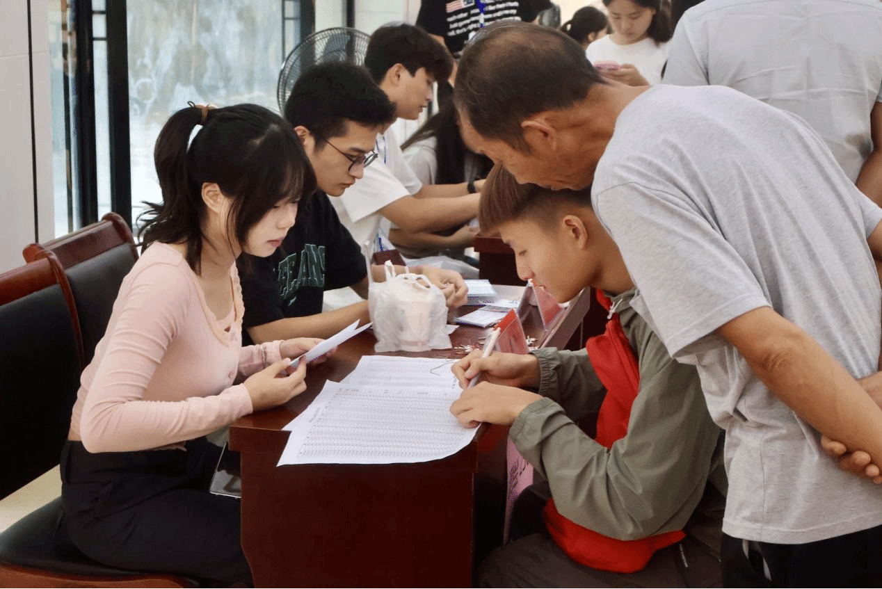 迎新现场,主题打卡墙、院系特色展板吸引新生及家长驻足留念。志愿者们全程协助搬运、引导人流、讲解流程,高效服务获一致赞许。