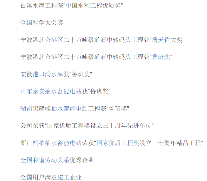 资质: 水利水电工程、市政公用工程、港口与航道工程施工总承包一级资质。 钢结构工程、机电设备安装工程、桥梁工程、隧道工程、爆破与拆除工程五项施工专业承包一级资质。 质量、环境、职业健康安全一体化管理体系认证。 具有独立承担大型水利水电工程、市政工程、火力发电、大型工业厂房、高层建筑、高等级公路、大跨度桥梁、深埋地下建筑、机场、码头,航道、海堤等工程的施工能力。 项目: 公司先后承建了浙江的新安江、富春江、湖南镇、紧水滩、华光潭、滩坑水电站,珊溪、白溪水库, 桐柏抽水蓄能电站,安徽的港口湾水库,福建的水口(中日联建)、芹山、街面、竹洲水电站,贵州的引子渡、三板溪、鱼塘水电站,四川的紫坪铺水利枢纽工程,云南的白水江水电站,广西的思安江水电站,山东的泰安抽水蓄能电站,江苏的胥口水利枢纽工程,甘肃的九甸峡水电站等水利水电工程。截止2013年初在建工程主要有四川官地、两河口、官帽舟水电站,安徽响水涧抽水蓄能电站,江苏溧阳抽水蓄能电站,福建仙游抽水蓄能电站,江西峡江水利枢纽工程,浙江顺溪水库大坝工程、重庆盖下坝水电站,南水北调中线一期工程等项目。 公司大力拓展非水利水电建筑业务,80年代以来,中国水利水电第十二工程局有限公司不但在混凝土面板堆石坝、抽水蓄能电站等工程施工领域创出了品牌,还进入了大中型火电、热电、输变电、工民建、市政、石化、公路、桥梁、机场、港口、航道、海洋等工程施工领域。自进入二十一世纪后,又大力参与海洋滩涂围垦工程的施工,并取得了良好的业绩。截止2013年初在建项目主要有浙江玉环漩门三期围垦工程、唐山港曹妃甸港区工程、国防第702所综合试验水池工程、福建福宁湾围垦工程等。 荣誉: