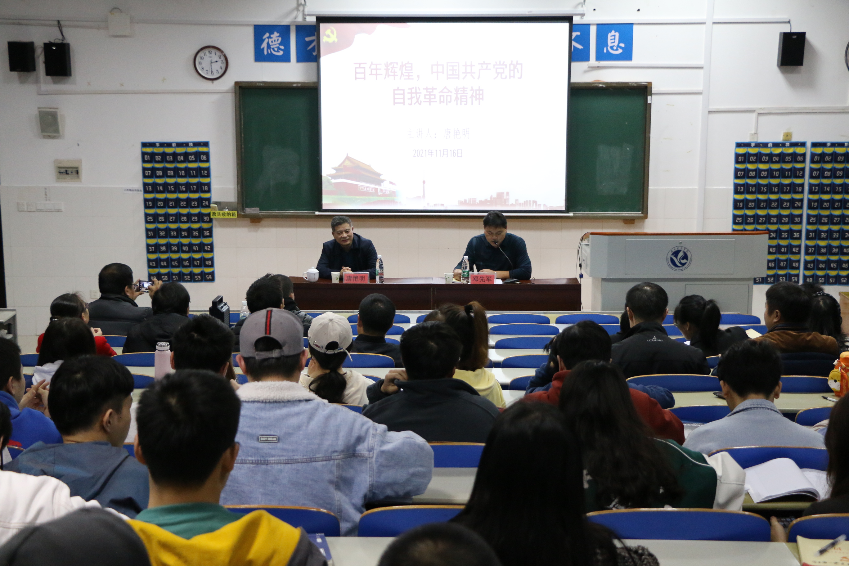 本网讯(通讯员 谢娟)11月17日,伟德源自英国1946原党委副书记唐艳明以“百年辉煌—中国共产党的自我革命精神”为题,为土木与环境工程学院全体师生党员上党课。党课由该院党总支书记邓先军主持。