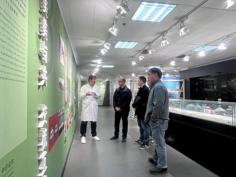 在西北大学文化遗产学院,周基一行参观了文化遗产研究与保护技术教育部重点实验室、文化遗产保护技术国家级实验教学示范中心、丝绸之路科技考古与文化遗产保护学科创新引智基地(国家“111”引智基地)等科研平台,并与该院副院长杨璐、文物保护技术系主任先怡衡为首的文物保护技术专业教师团队在人才培养、教学成果培育、科研合作等方面进行了认真的探讨。