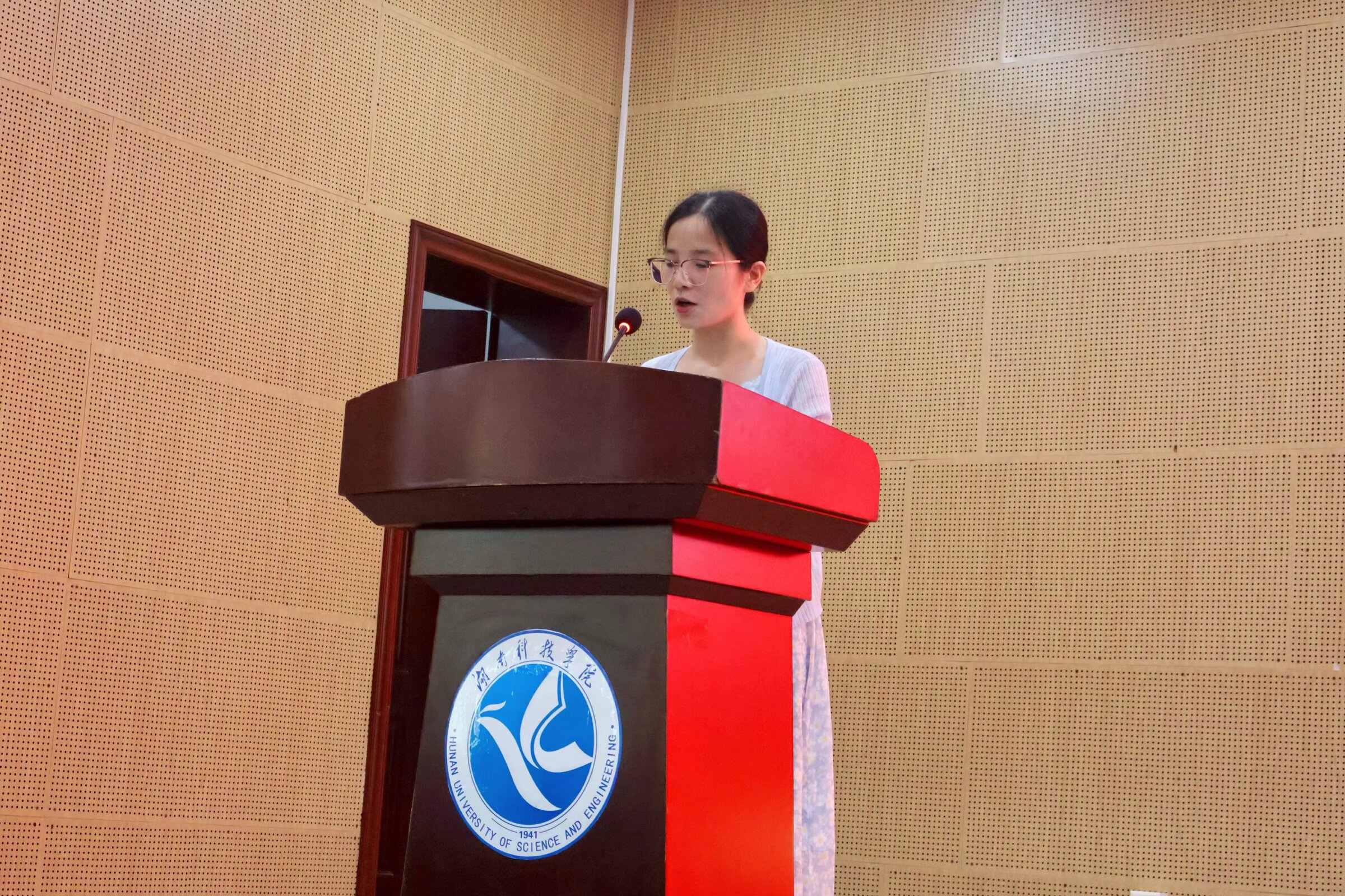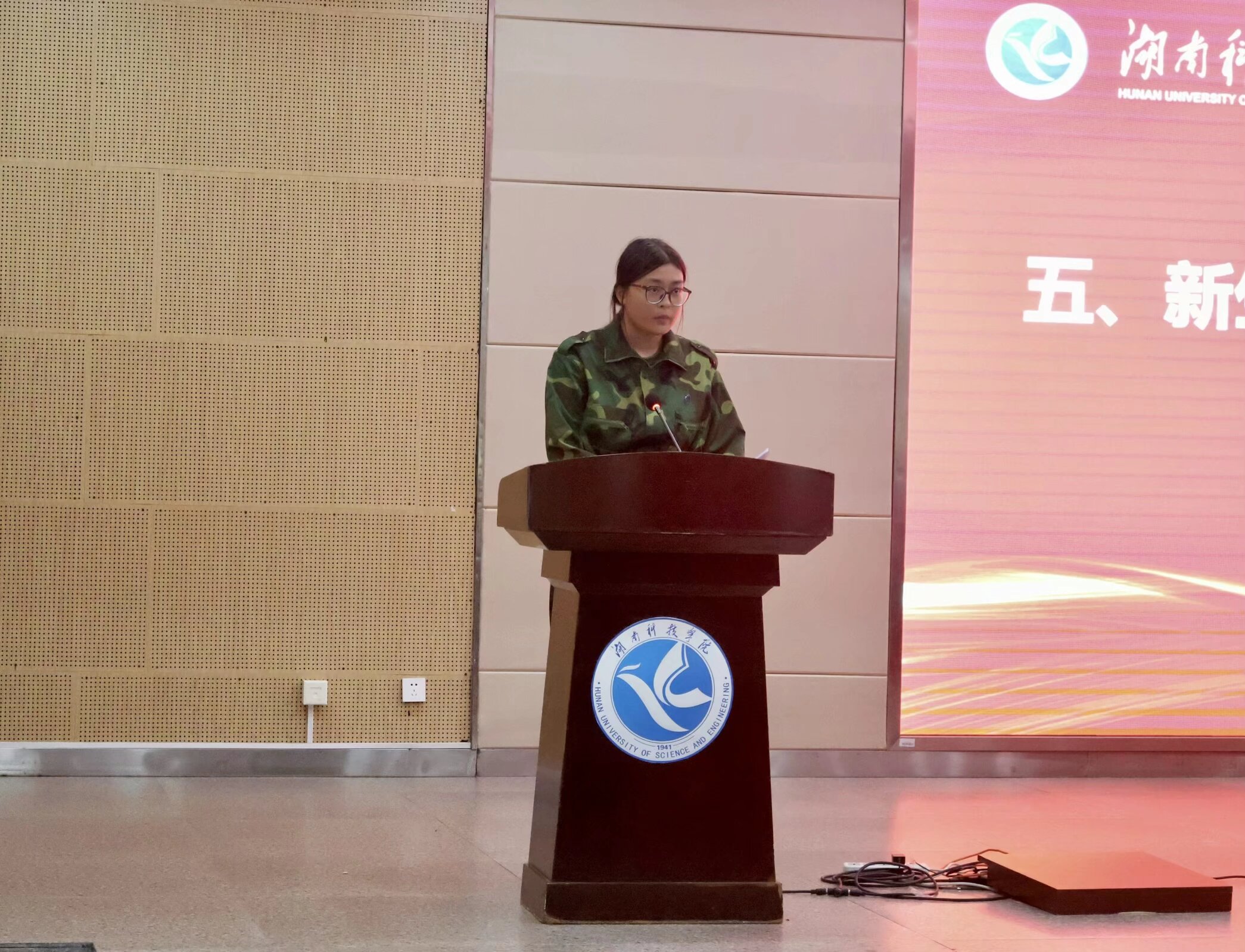 随后,教师代表、国家级一流课程负责人郭恩平副教授以 “探索、积累、突破” 为关键词,结合自身教学科研经历,勉励新生既要科学规划大学时光,扎实掌握专业基础,也要主动参与实践创新,在探索中积累经验,在积累中实现突破,以真才实学扛起时代赋予的责任。校长奖学金团体奖获得者代表、建筑 2202 班吴启同学分享了自己在学竞赛、志愿服务中的成长故事,鼓励学弟学妹们大胆尝试、勇于挑战,在多元实践中发掘潜力,书写独一无二的青春篇章。新生代表、土木 2502 班张子芊同学则代表全体 2025 级新生表态,将以 “德才兼备、自强不息” 的校训为指引,坚定理想信念,勤学笃行、不负韶华,在湘科院的沃土上追逐梦想、成长成才。