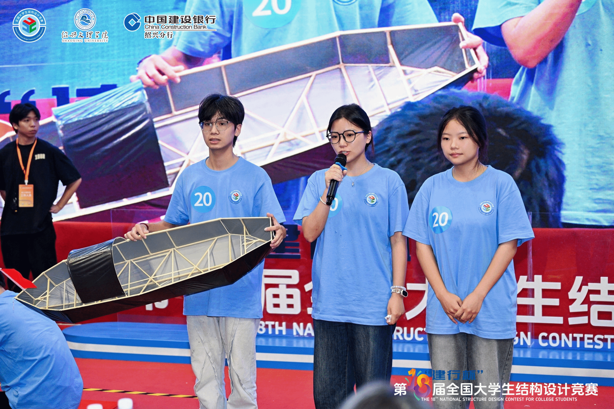 本届大赛赛题为“乌篷船模型结构设计与制作”,参赛队伍通过分析竖向静荷载、偏心荷载及水平冲击荷载等多种荷载工况下的受力情况,设计与优化乌篷船结构模型,现场制作并完成加载试验。经各省组织分区赛层层选拔,全国119所高校的120支队伍脱颖而出,参与本届总决赛全国一等奖角逐。
