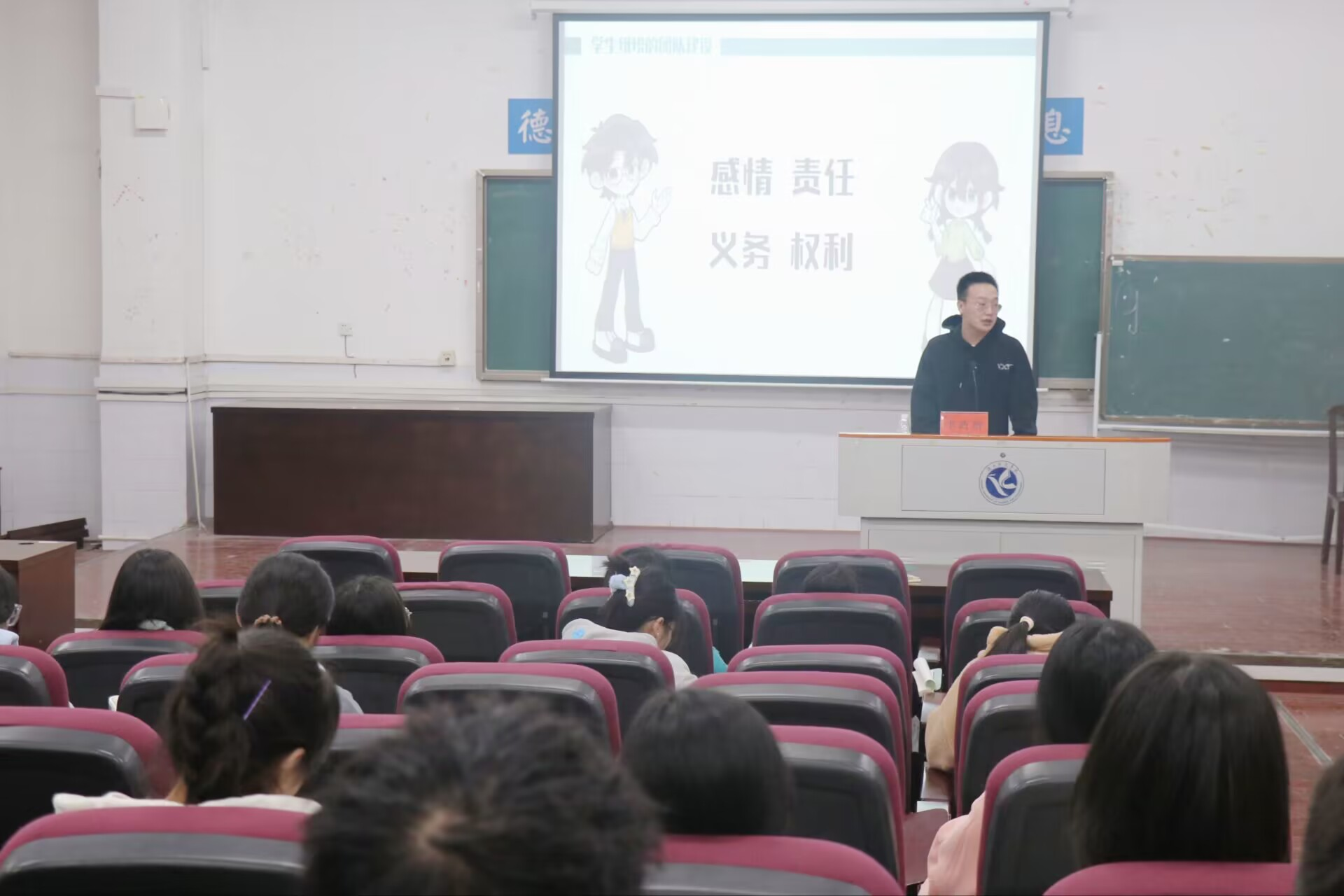 第三堂理论课由团总支书记、19级辅导员李政锴主讲,围绕“学生干部技能培训”展开。他指出,我们作为学生干部,要努力提高自己的素质,培养自己的能力,才能更好地为老师和同学们服务。同时从“学生活动的创意、策划”、“学生干部的人际交往”和“学生干部的口才培养”三个方面说明应该怎样做好一个学生干部。