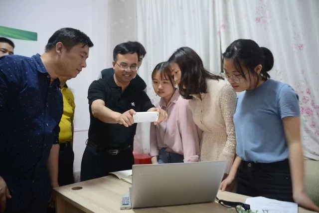 平时与陈弘书记这么近距离交流的机会不多,陈书记的到来,令我们感到十分亲切。陈书记了解我们的微党课主题后说道:“这个很好!”。看到我们的微党课PPT 中提到了永州市委书记李晖来伟德调研时,勉励伟德积极打造“三名工程”(名师、名专业、名学生),他拿起手机要给我们拍照,说要记录下我们学习的一刻。
