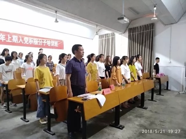 本网讯(通讯员:叶琴)5月21日晚7:10,外国语学院党总支在博雅楼东1-2举办2018年上期入党积极分子培训班开班仪式暨第一节理论课授课。参加此次开班典礼的有外国语学院党总支书记雷树彬、英语日语专业联合学生党支部书记杜俊杰、学生干部代表以及大一大二入党积极分子。