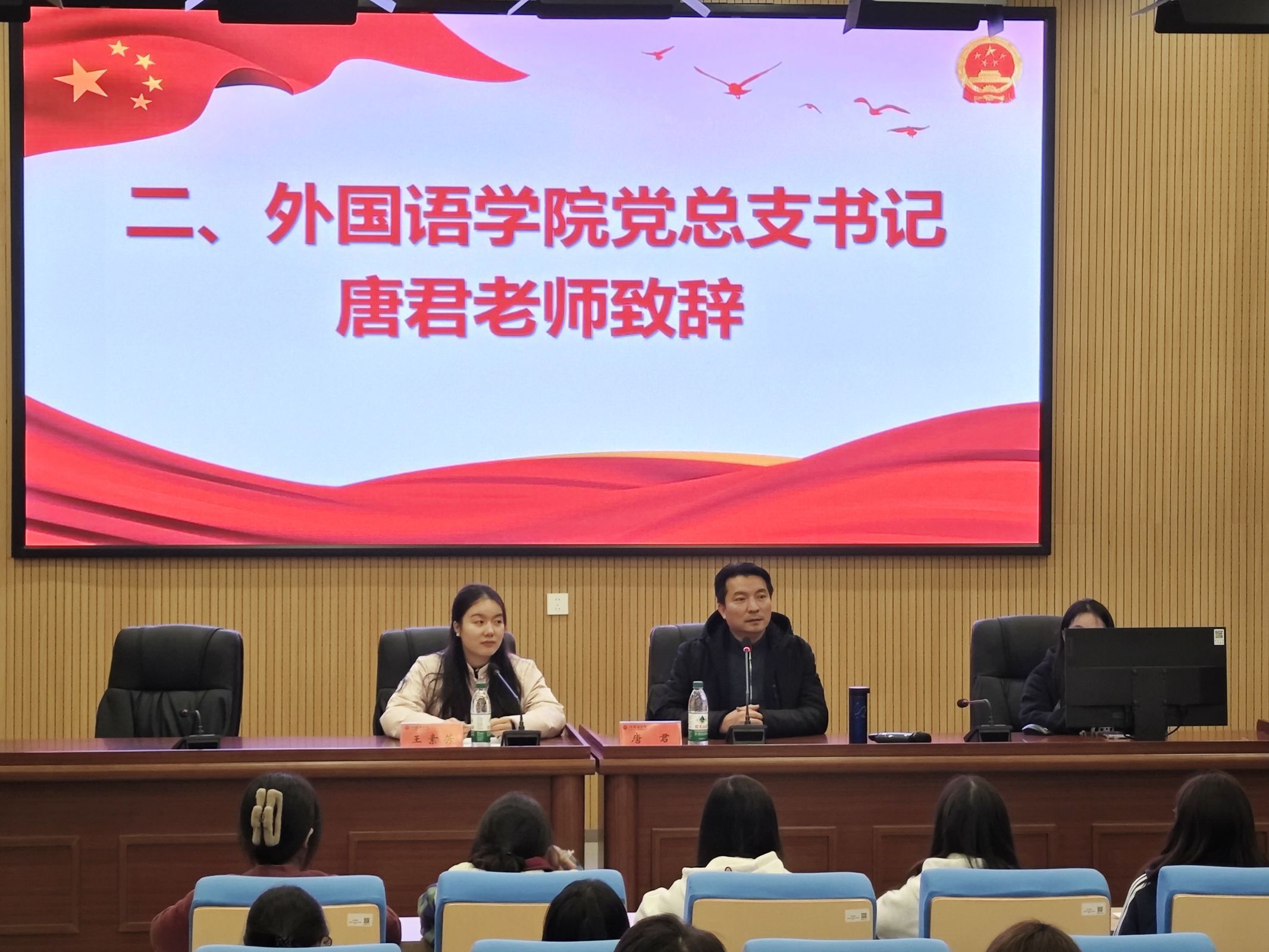 11月25日晚,由外国语学院分党校、经济与管理学院分党校、马克思主义学院分党校合办的2024年下期入党积极分子培训班开班仪式在博雅楼东三举行。外国语学院党总支书记唐君以及培训班主任王素芳出席此次开班典礼,共105名学员参加。