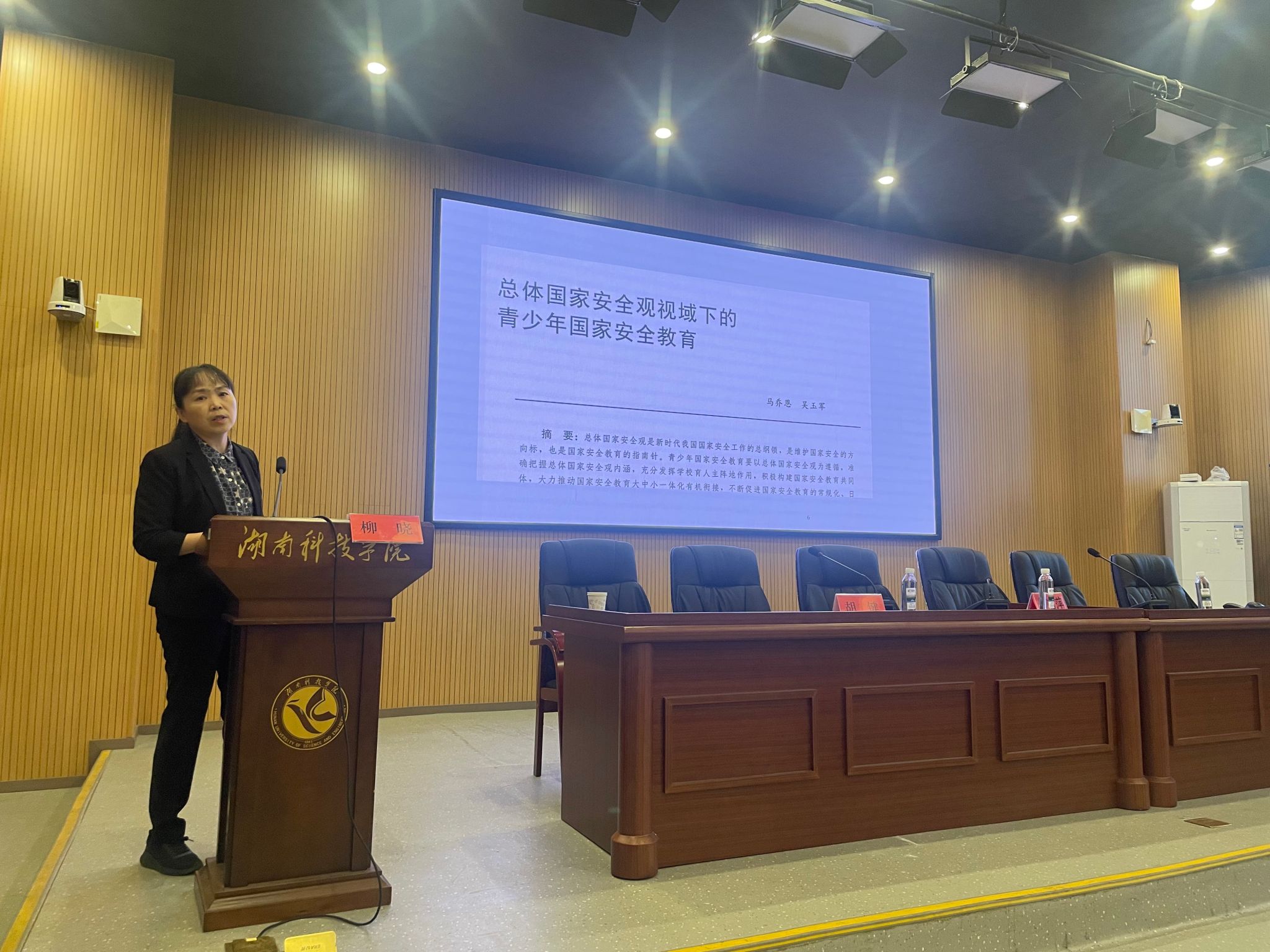 柳晓教授首先介绍了选题的社会背景,强调了总体国家安全观的指导意义。随后用丰富详尽的文献和实例阐述了文学现象,认知科学与国家安全等跨学科下的美国文学战争叙事的相关研究。