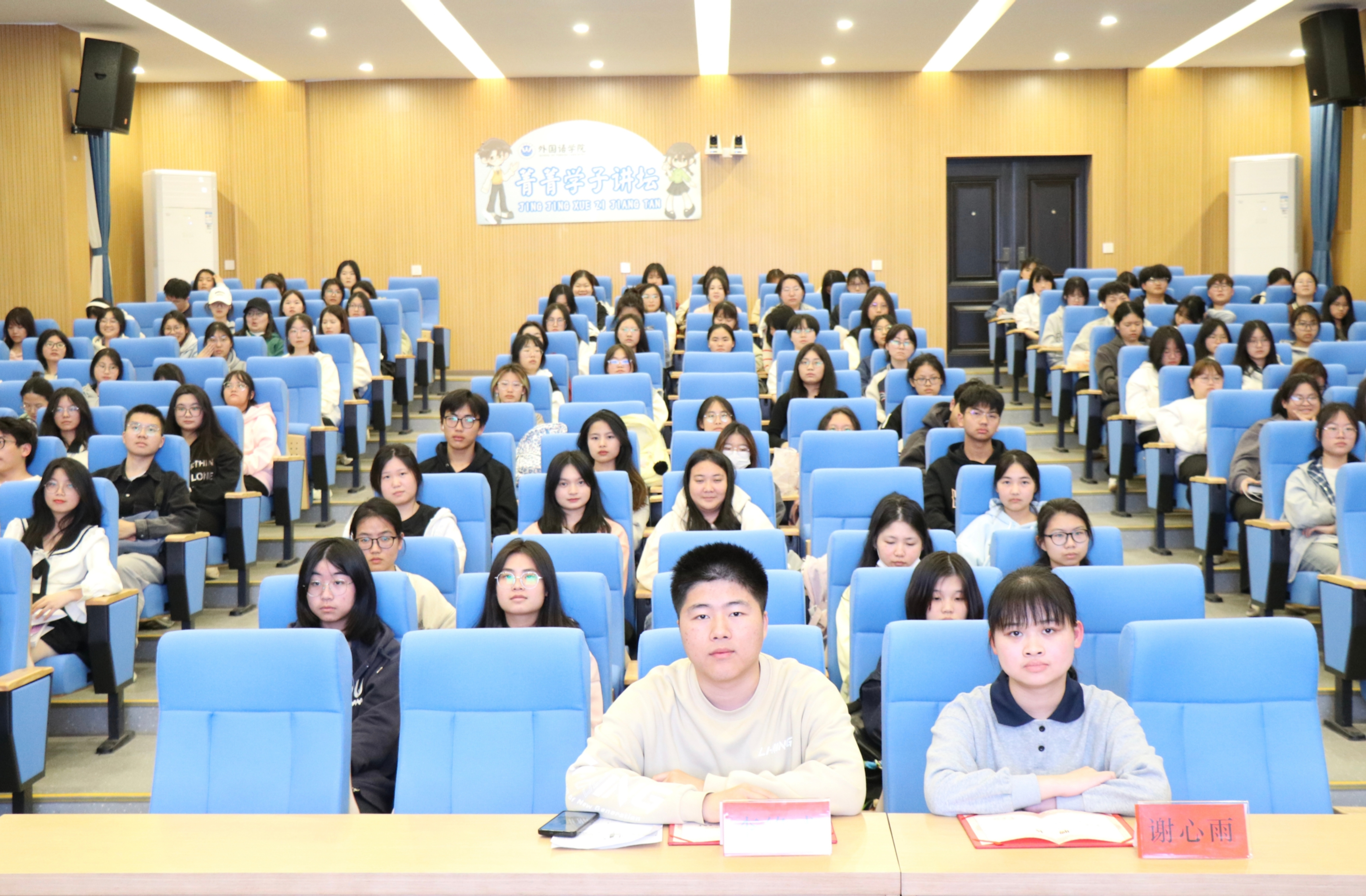 (通讯员 赵思怡 摄影 陈昊)3月26日19:10,外国语学院于博雅楼东三报告厅举办了第九十五期菁菁学子讲坛,主题为“习与智长,攻‘四’克难”。本期讲坛的主讲嘉宾为英师2104班谢心雨、商英2101李缘成,共有176名同学主动报名参加。