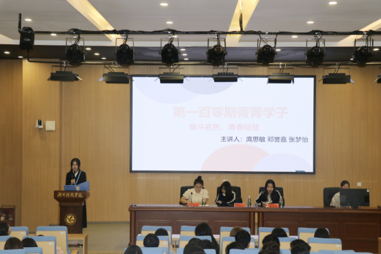 (通讯员 李灿 摄影 杨桂兰)10月14日晚19:10,外国语学院于博雅楼东三报告厅举办了第101期菁菁学子讲坛。主题为“奋斗底色,青春绽放”。 本期讲坛的主讲嘉宾为英师2203班庹思敏、商英2203班邓誉嘉、日语2201班张梦怡。此次活动共有191名同学主动报名参加。