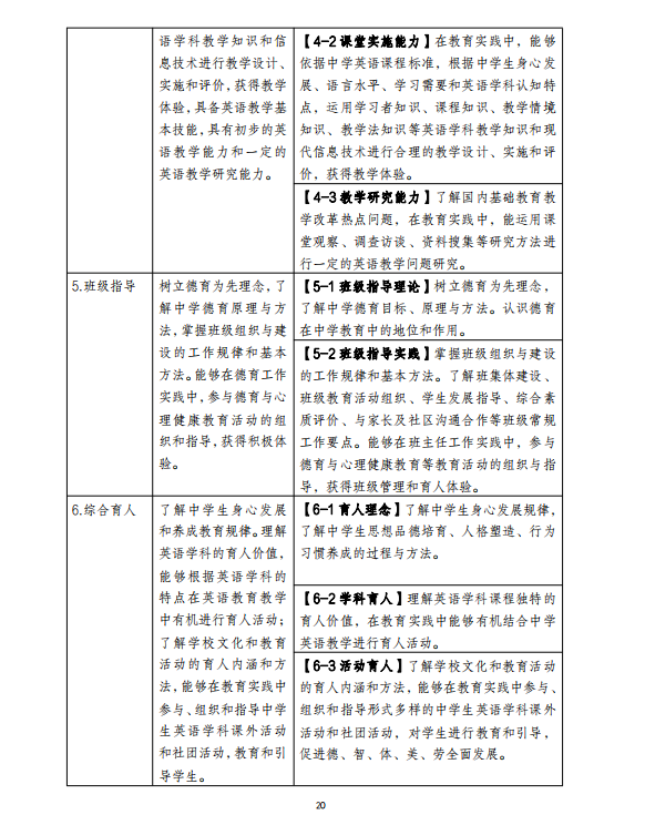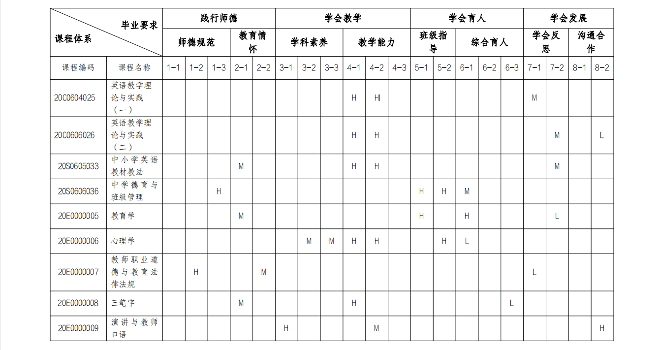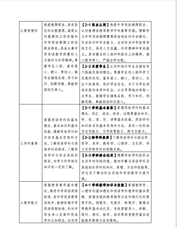 掌握英语学科发展和中学英语课程改革发展动态,能在自身专业发展 和中学英语教育教学实践中不断反思,改进教学,养成终身学习的习惯。 具有良好的团队合作精神和沟通协调能力,具备成长为中学英语教育卓越 教师的素养。