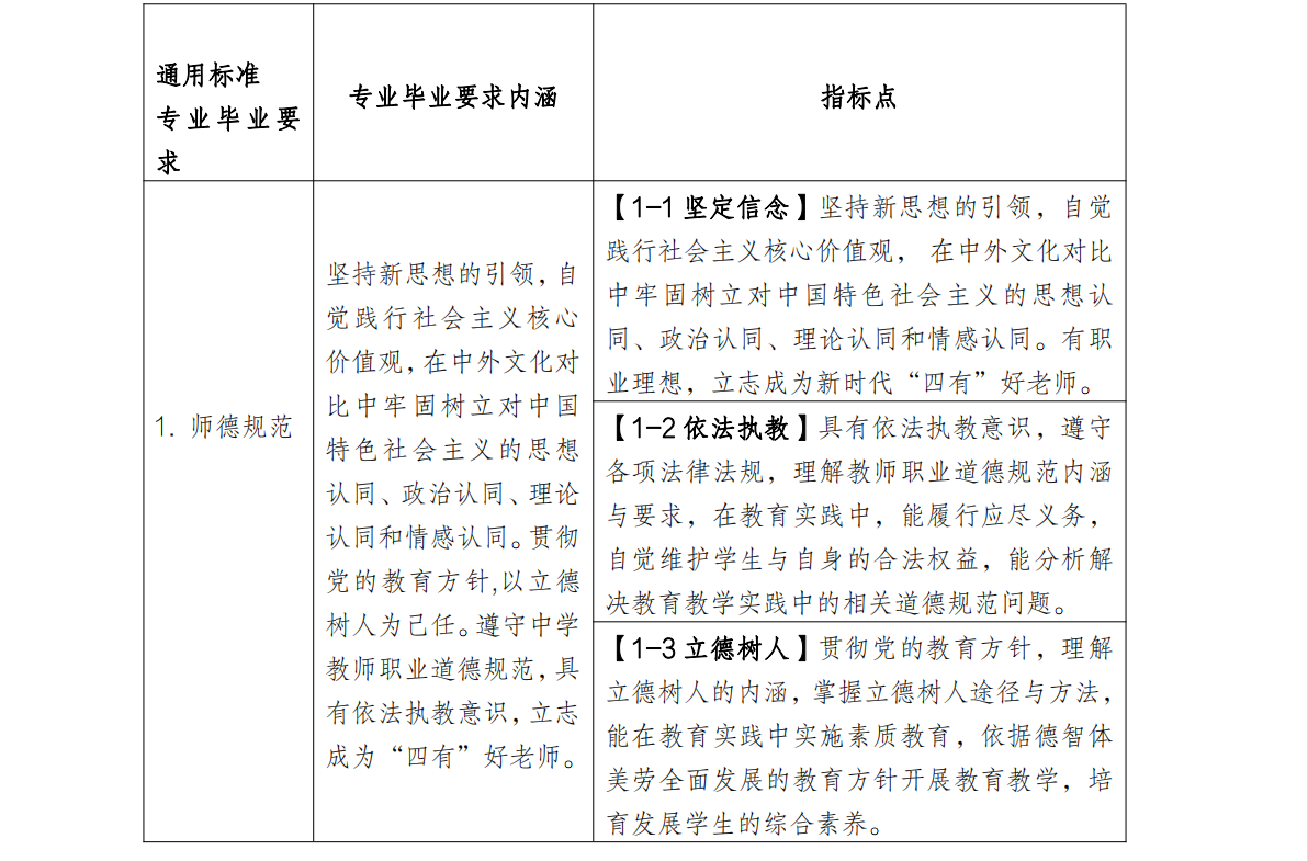 理想信念坚定,拥护中国共产党的领导,坚持新思想的引领,自觉践 行社会主义核心价值观,具有坚定的教育职业理想和甘于奉献的精神;贯 彻党的教育方针,坚持立德树人,能依法执教、关爱学生,具有良好的师 德和深厚人文底蕴、科学精神,成为新时代“四有”好老师。