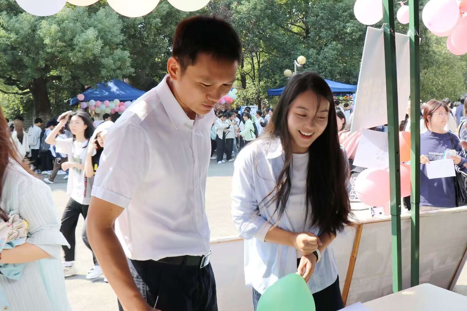 活动伊始,学院通过“寄情心语,沐光而行”手绘艺术字体便签收集活动,征集并展示了同学们励志寄语,传递正能量。活动中,共有“盲笔绘颜”、“达芬奇密码”、“蛋壳投手”三个游戏环节,吸引了众多同学踊跃参与,不仅有效缓解了学业压力,还增强了团队协作能力,让他们在互相支持中共同进步。