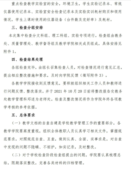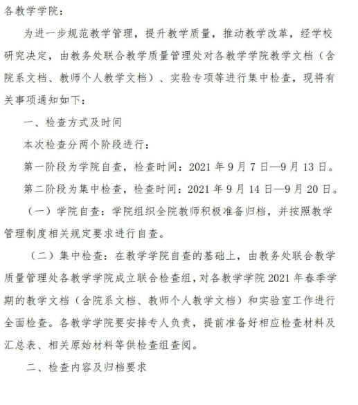 关于开展2021年秋季学期期初教学检查的通知