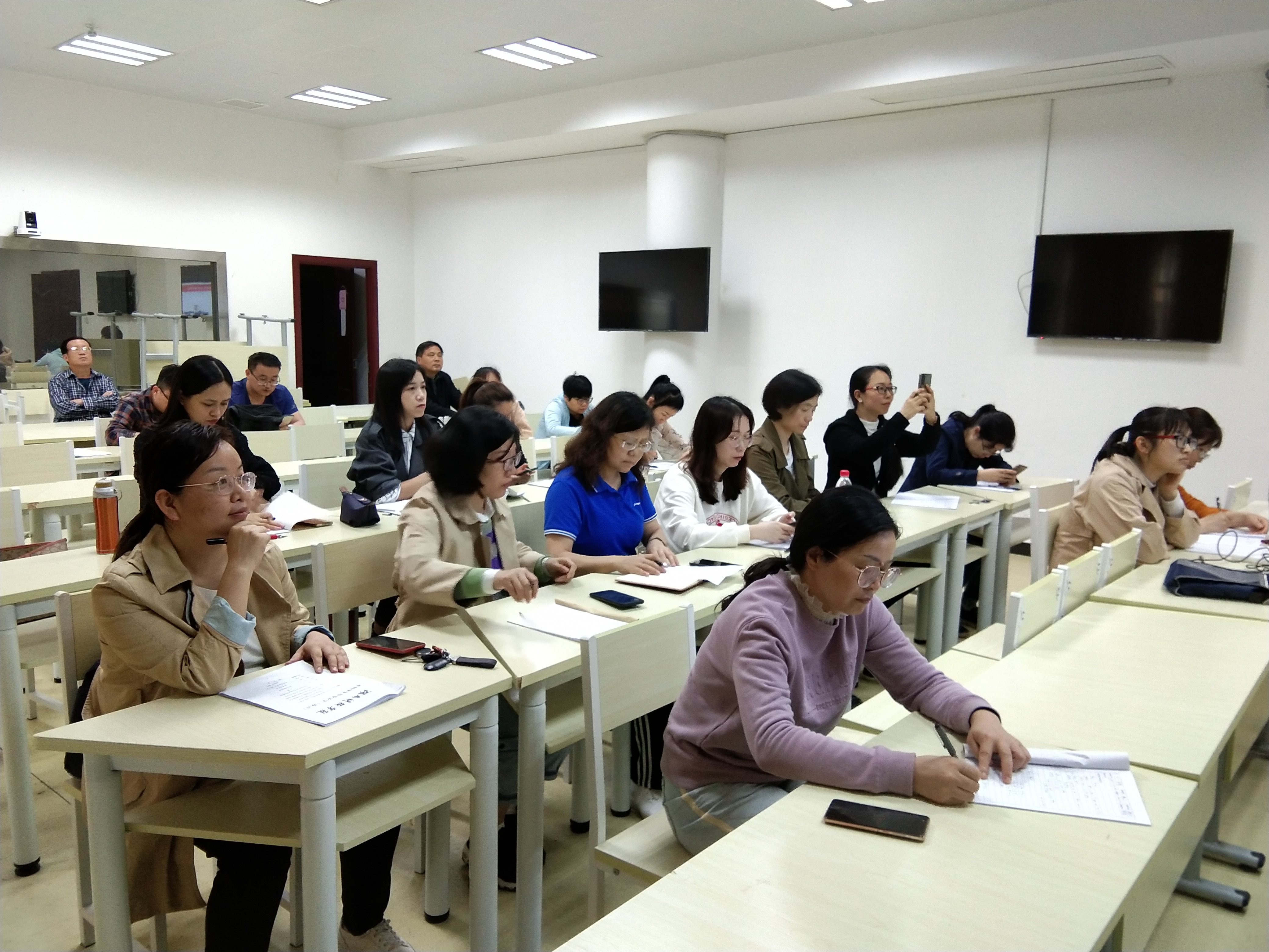 本网讯 518日下午,外国语学院公共教学部张文君老师在潇湘大讲堂二楼智慧教室主持了如何将思政教学融入到大学英语四六级辅导课程的教学研讨活动,公共英语教学部20余名教师参加了本次研讨会。