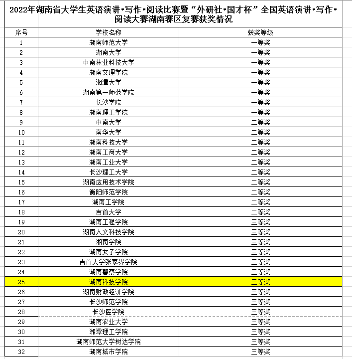 本网讯 11月18至20日,2022年湖南省大学生英语演讲•写作•阅读比赛暨“外研社•国才杯”全国英语演讲•写作•阅读大赛湖南赛区复赛以线上方式进行。本次大赛由湖南省教育厅主办,吸引了全省52所本科院校代表同台竞技。经过角逐,伟德代表队表现优异,取得团体三等奖与多项个人三等奖。