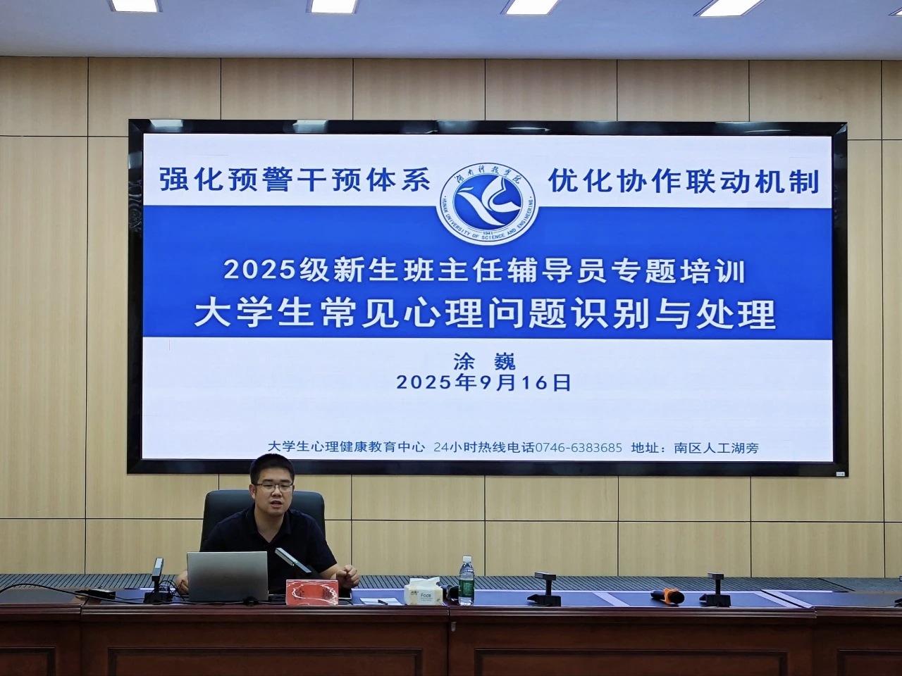 培训第二阶段,大学生心理健康教育中心主任涂巍作“大学生心理问题识别与危机干预”专题辅导,剖析了常见心理问题的表现与识别技巧,强调早期干预的关键性,并指出新生期是重点,辅导员和班主任需熟练掌握危机干预策略与方法。
