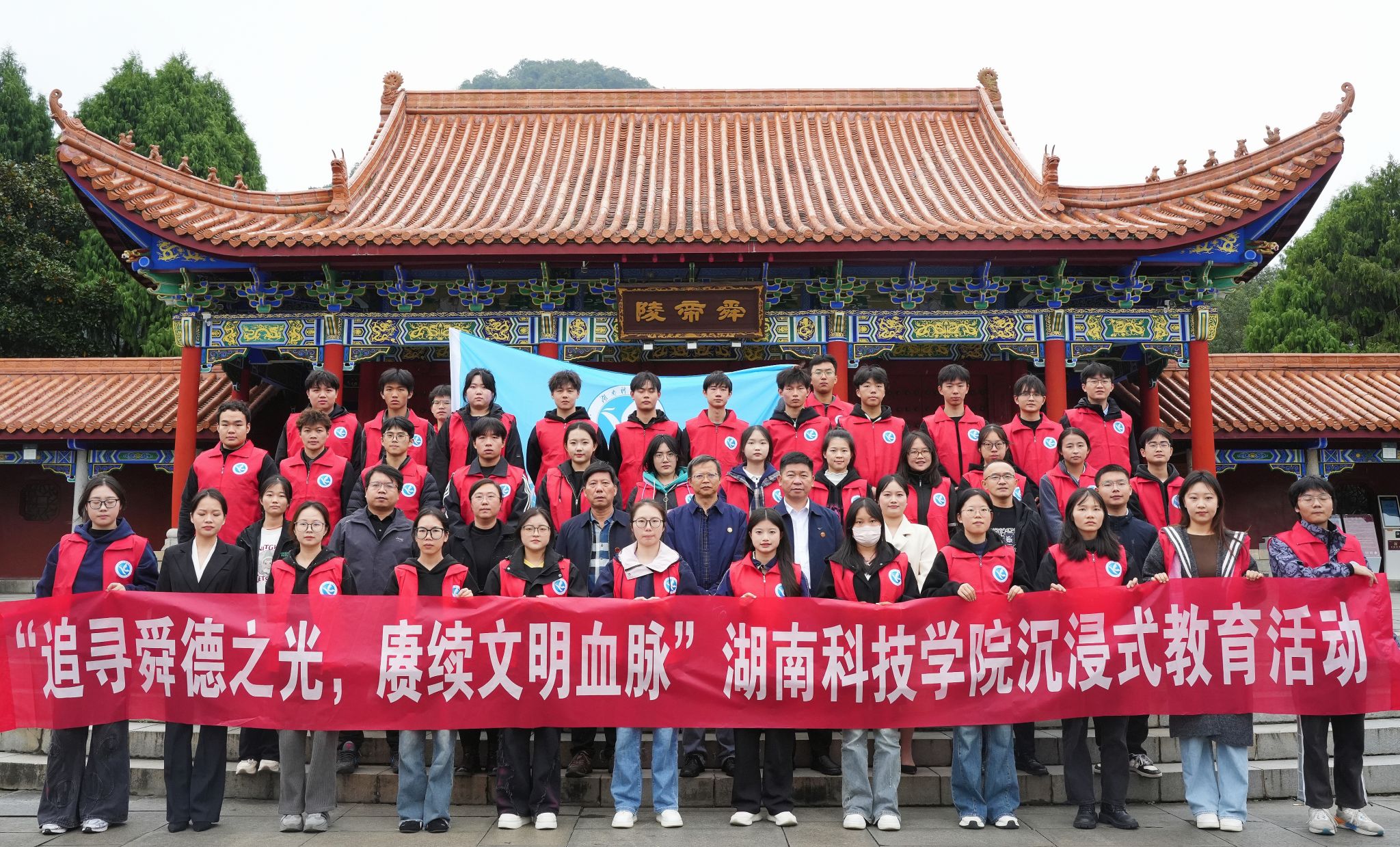 本网讯(记者 谷利梅 摄影 吴伊娜)当历史典籍碰上实地走访,当古代先贤对话当代青年,思政教育应该如何打破边界、“破圈”育人?近日,伟德30余名舜德学子代表奔赴永州市宁远县舜帝陵,开展了一堂沉浸式“移动思政课”,通过实地探访感悟舜德精神,筑牢文化自信。