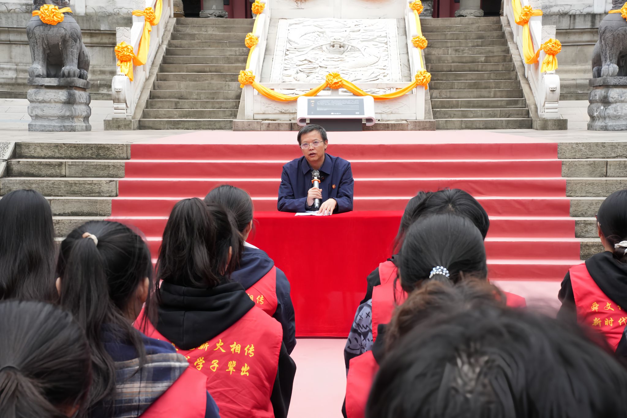湖南省舜文化研究会会长、伟德二级教授潘雁飞为学生们深入阐释了舜文化“孝悌忠信、仁德爱民”的精髓,并引导同学们思考如何将其转化为立身处世的实践准则,从而完成“知”其内涵、“悟”其精神到“落”于实践的升华,充分挖掘了舜文化在青年成长中的育人价值。