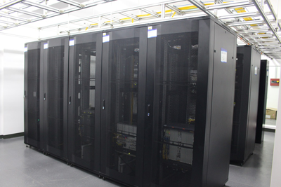 (2)机柜布局及走线。采用华为模块化机房组建数据中心,集成机柜、制冷、配电、管理等子系统,更节能环保;交换中心配置了一组光纤配线柜和两组网络设备柜,分列连体安装,一体化管理;全机房安装开放式桥架进行上走线并分层固定。