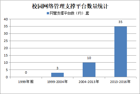 (9)新增业务种类。第三阶段在之前的基础上增加了新的支撑体系和业务网络,包括智能发电系统、智能网络运维平台、IP呼叫中心等支撑体系;包括无线WIFI、保密专网(包括但不限于一卡通、IP广播、安防监控、水电监控、标准化考场等承载类网络)、运营商有线网络统一管理等业务网络,并将校内网络业务有机融合,实现了校内一张物理网络的管理格局。