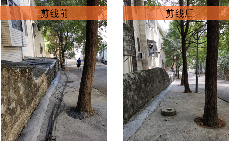 2021年9月18日上午,根据文明创建的要求,按照学校领导的指示,信息化办组织力量,对学校北门的弱电线路进行了彻底清理,从北门左侧的“组培楼”起,到右侧的桂园1栋左前方的所有不规范线路,进行了全面清理。