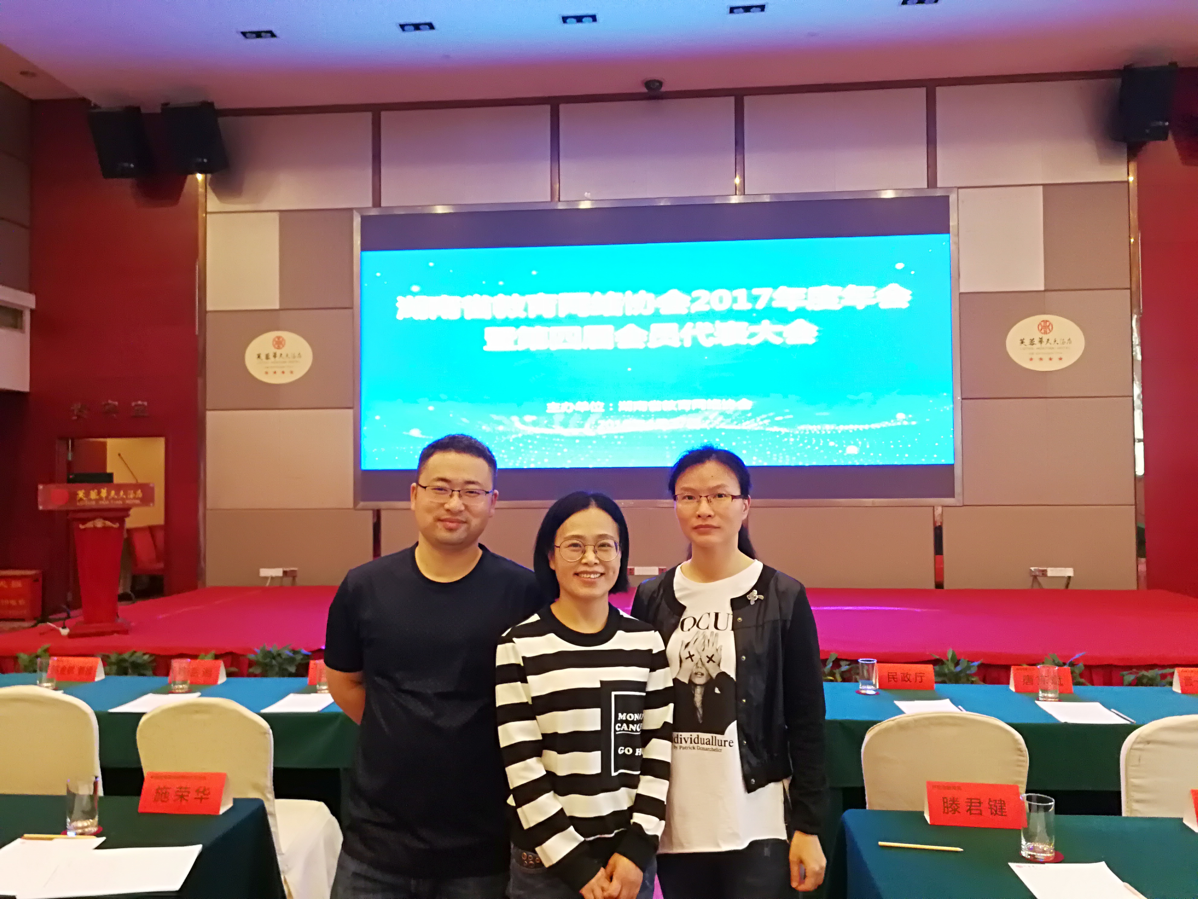 湖南省教育网络协会2017年度年会暨第四届会员代表大会于2018年4月26日至28日在长沙召开。我中心副主任林华、网络科科长段国云等参加了会议。