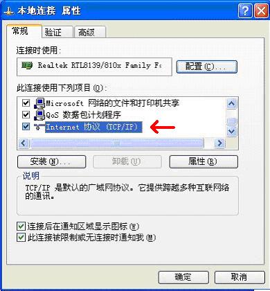 (5)点击鼠标左键1下【Internet协议(TCP/IP)】 点击鼠标左键1下【确定】。