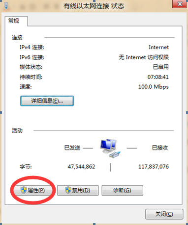 (2)点击右侧【连接:有线以太网连接】或【连接:本地连接】