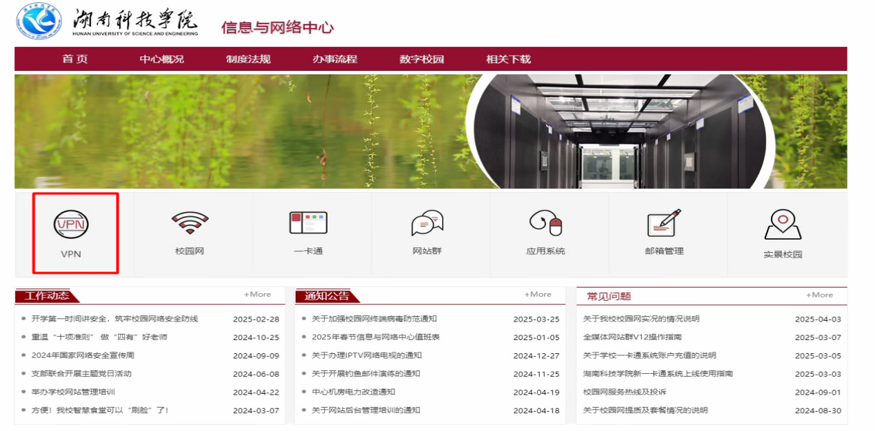2、进入信息与网络中心部门网站,点击VPN图标。